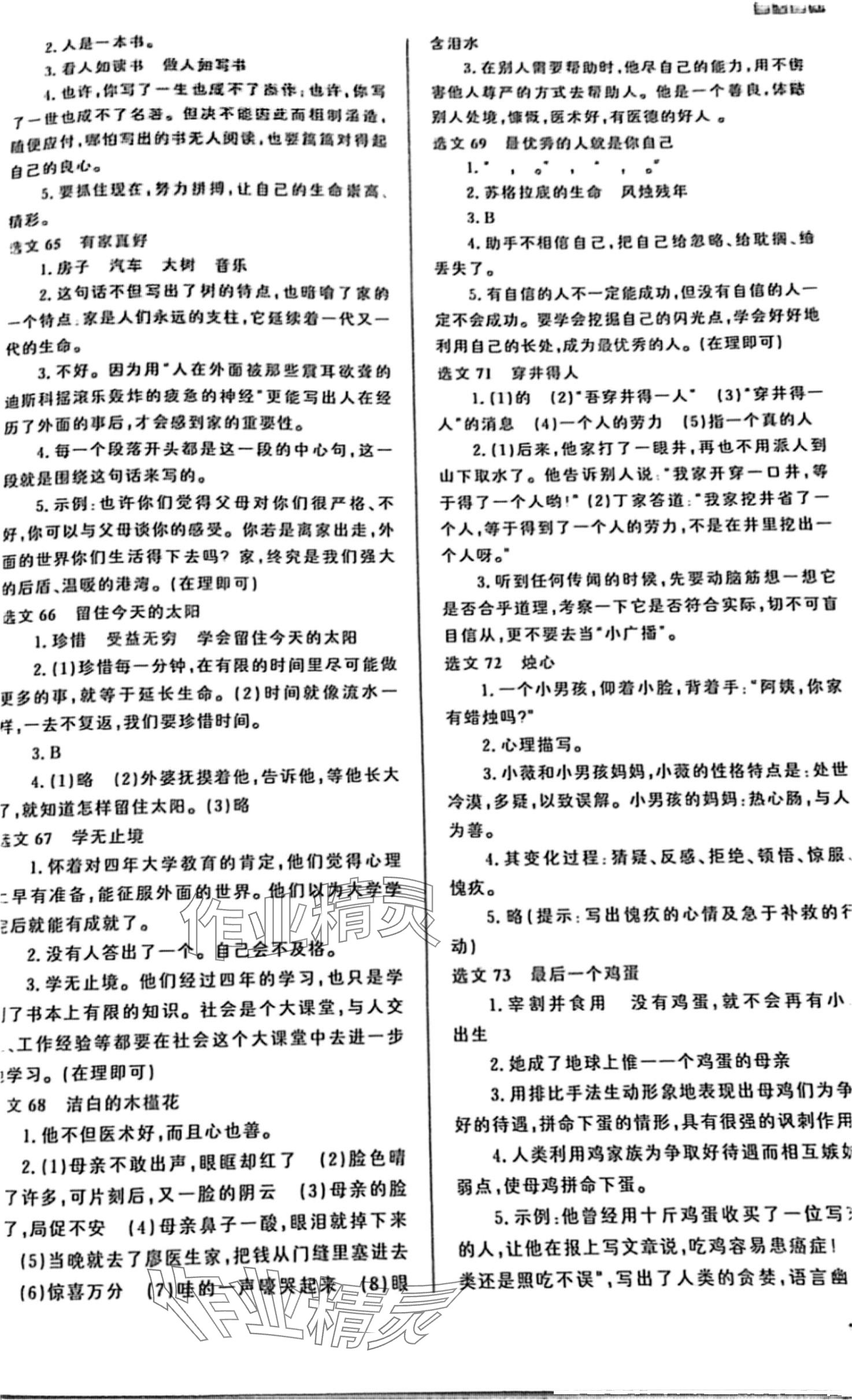 注:目前有些书本章节名称可能整理的还不是很完善,但都是按照顺序排列的,请同学们按照顺序仔细查找。练习册 2024年木头马阅读高效训练80篇六年级语文 答案主要是用来给同学们做完题方便对答案用的,请勿直接抄袭。