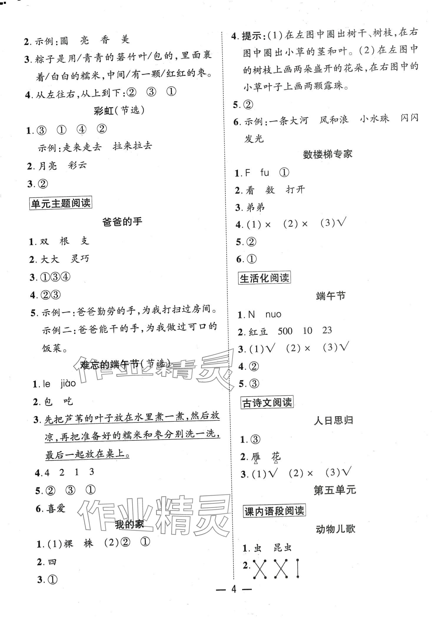 注:目前有些书本章节名称可能整理的还不是很完善,但都是按照顺序排列的,请同学们按照顺序仔细查找。练习册 2024年快乐阅读小英才一年级语文人教版 答案主要是用来给同学们做完题方便对答案用的,请勿直接抄袭。