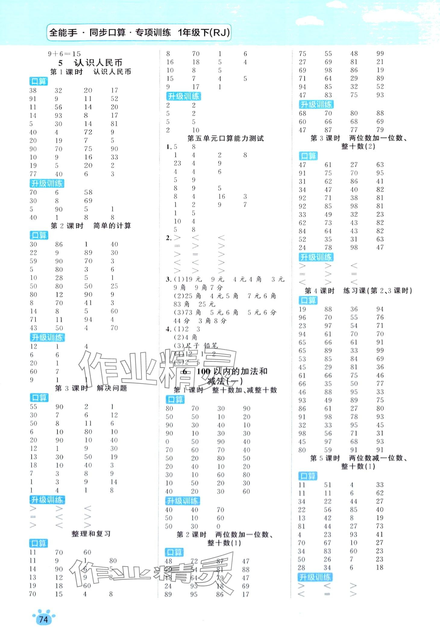 注:目前有些书本章节名称可能整理的还不是很完善,但都是按照顺序排列的,请同学们按照顺序仔细查找。练习册 2024年全能手同步口算专项训练一年级数学下册人教版 答案主要是用来给同学们做完题方便对答案用的,请勿直接抄袭。