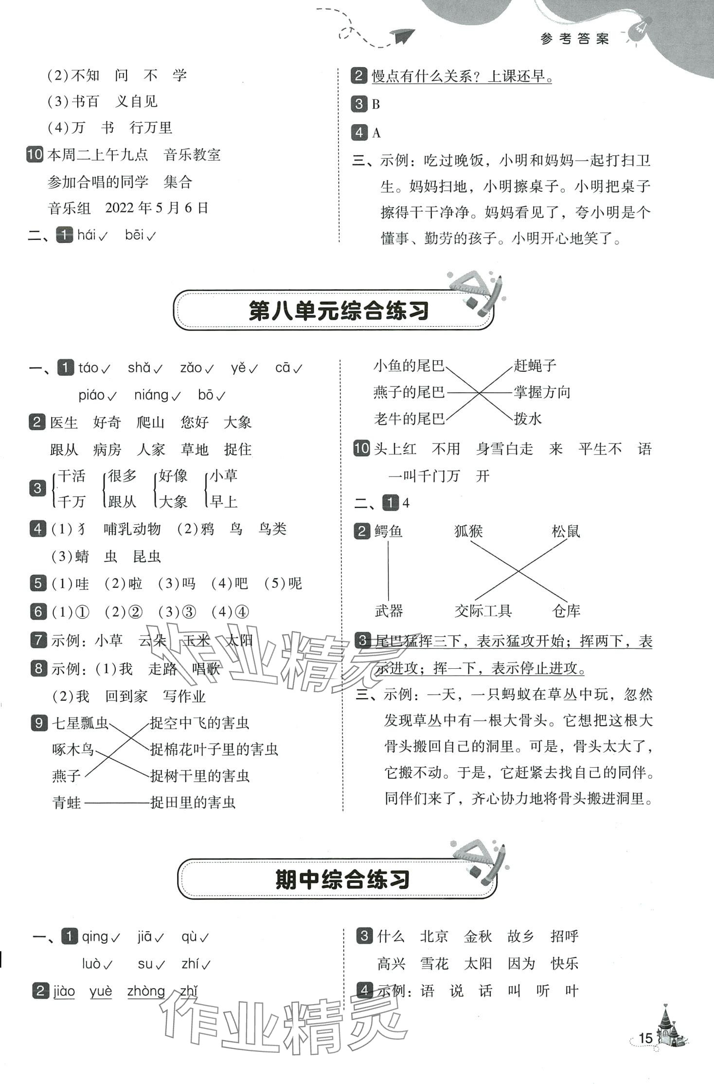 注:目前有些书本章节名称可能整理的还不是很完善,但都是按照顺序排列的,请同学们按照顺序仔细查找。练习册 2024年北大绿卡一年级语文下册人教版深圳专版 答案主要是用来给同学们做完题方便对答案用的,请勿直接抄袭。