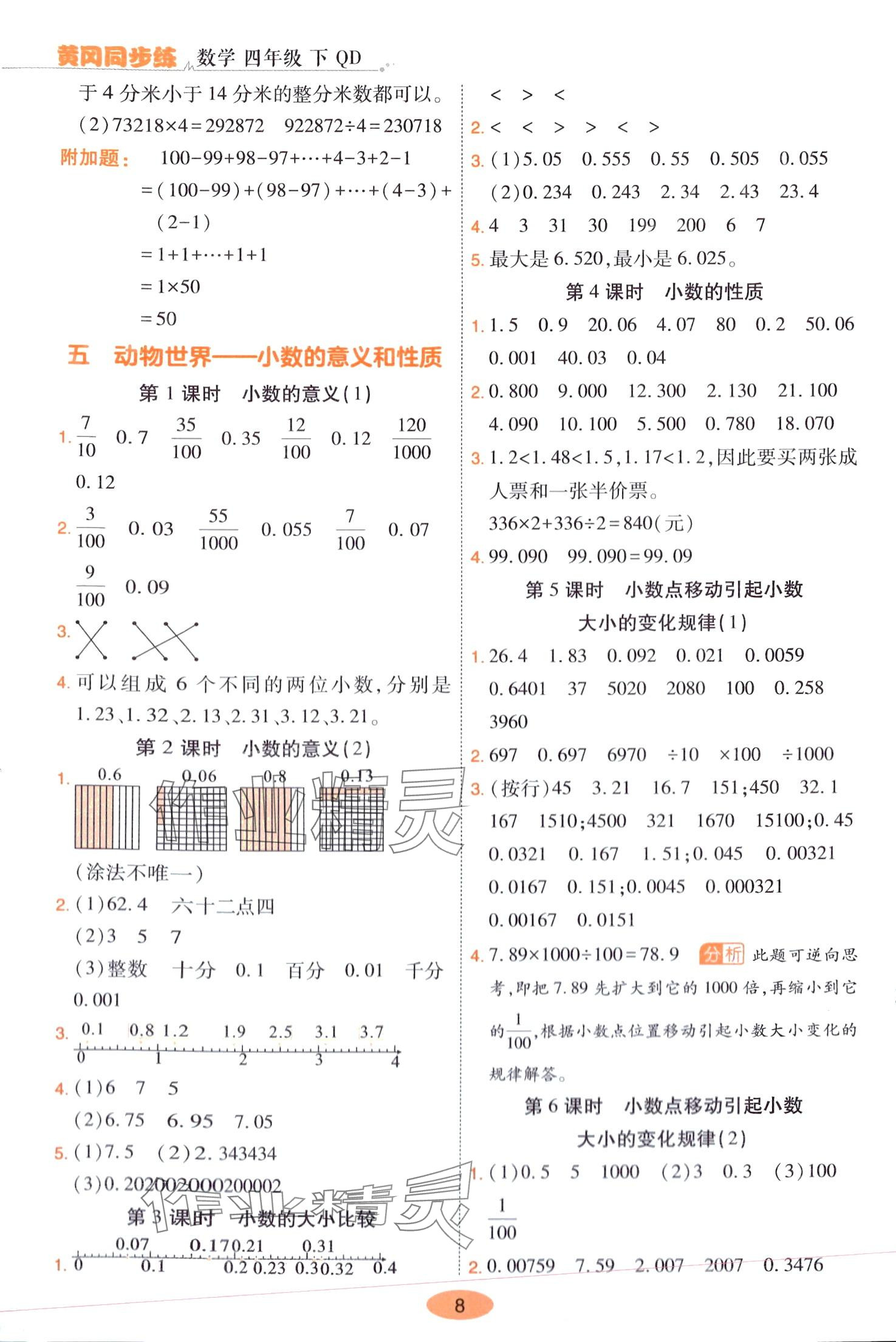 注:目前有些书本章节名称可能整理的还不是很完善,但都是按照顺序排列的,请同学们按照顺序仔细查找。练习册 2024年黄冈同步练一日一练四年级数学下册青岛版 答案主要是用来给同学们做完题方便对答案用的,请勿直接抄袭。