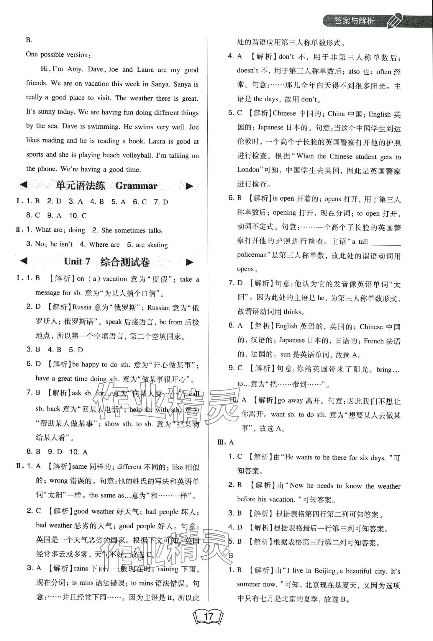 注:目前有些书本章节名称可能整理的还不是很完善,但都是按照顺序排列的,请同学们按照顺序仔细查找。练习册 2024年北大绿卡七年级英语下册人教版 答案主要是用来给同学们做完题方便对答案用的,请勿直接抄袭。