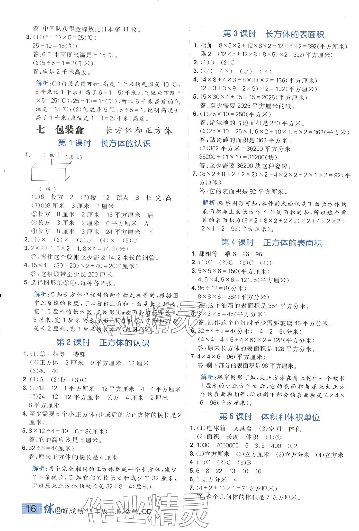 注:目前有些书本章节名称可能整理的还不是很完善,但都是按照顺序排列的,请同学们按照顺序仔细查找。练习册 2024年练出好成绩五年级数学下册青岛版 答案主要是用来给同学们做完题方便对答案用的,请勿直接抄袭。