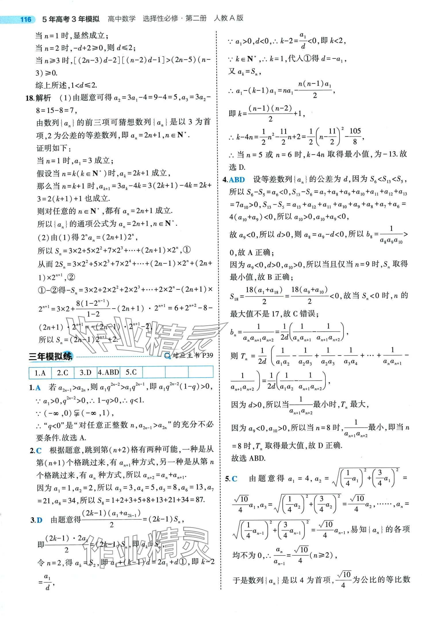 注:目前有些书本章节名称可能整理的还不是很完善,但都是按照顺序排列的,请同学们按照顺序仔细查找。练习册 2024年5年高考3年模拟高中数学选择性必修第二册人教A版 答案主要是用来给同学们做完题方便对答案用的,请勿直接抄袭。