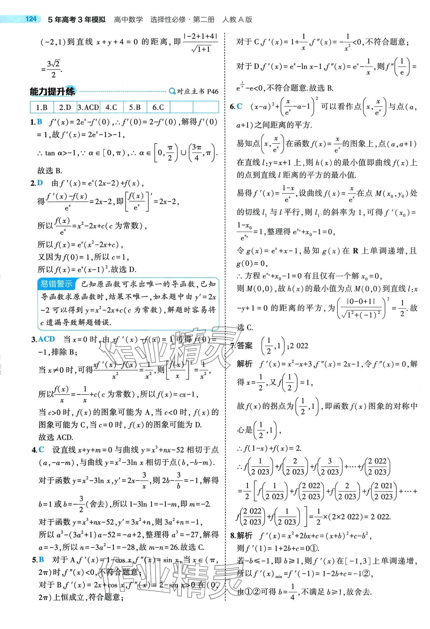 注:目前有些书本章节名称可能整理的还不是很完善,但都是按照顺序排列的,请同学们按照顺序仔细查找。练习册 2024年5年高考3年模拟高中数学选择性必修第二册人教A版 答案主要是用来给同学们做完题方便对答案用的,请勿直接抄袭。
