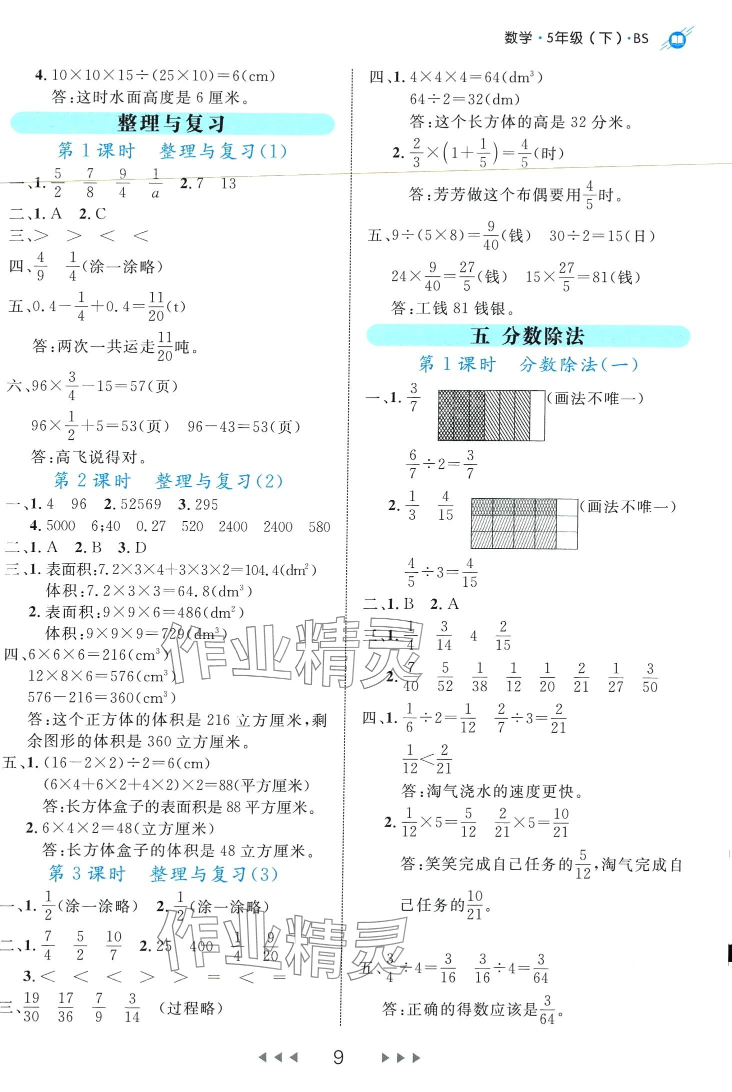 注:目前有些书本章节名称可能整理的还不是很完善,但都是按照顺序排列的,请同学们按照顺序仔细查找。练习册 2024年细解巧练五年级数学下册北师大版 答案主要是用来给同学们做完题方便对答案用的,请勿直接抄袭。