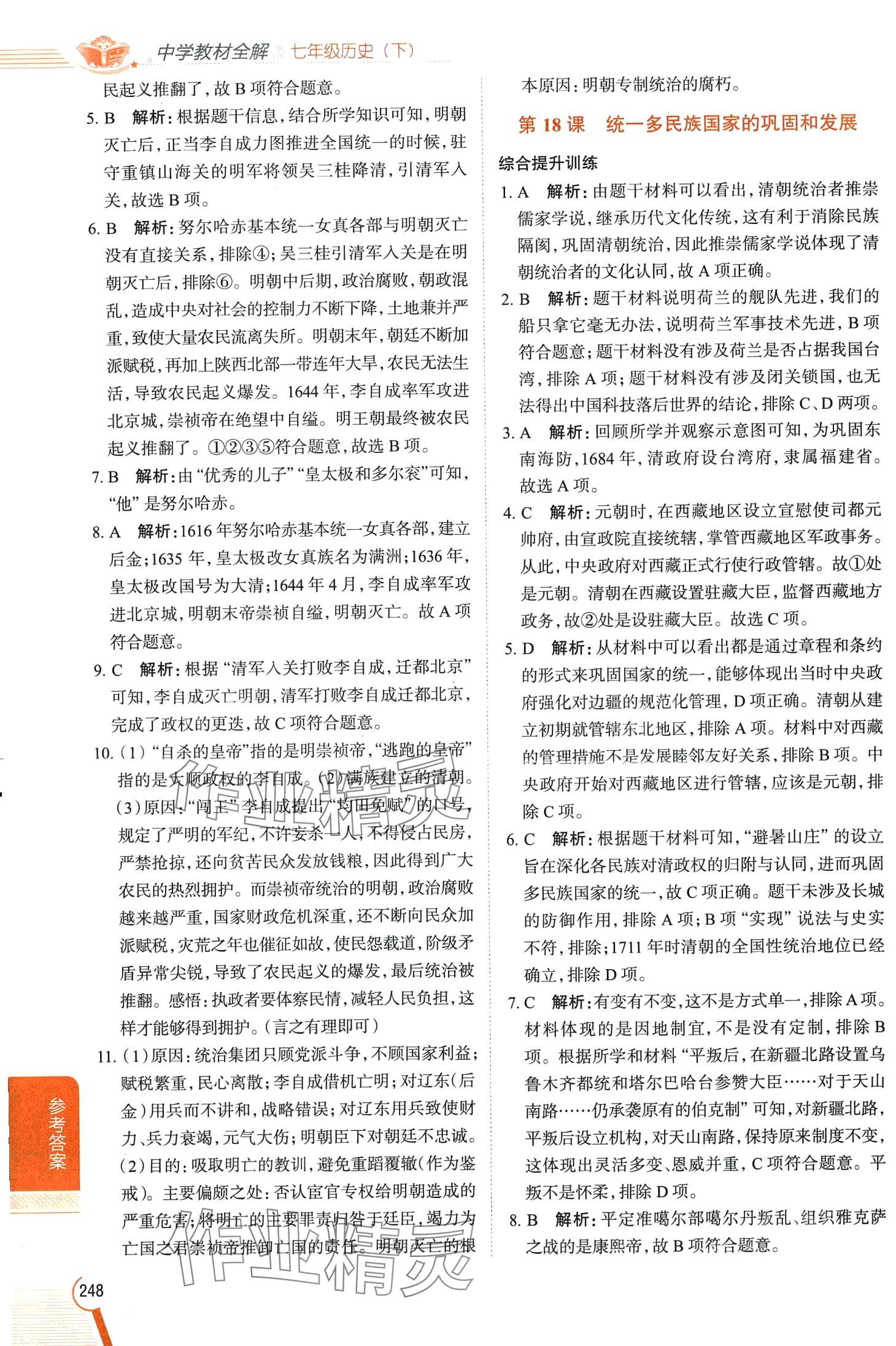 注:目前有些书本章节名称可能整理的还不是很完善,但都是按照顺序排列的,请同学们按照顺序仔细查找。练习册 2024年中学教材全解七年级历史下册人教版 答案主要是用来给同学们做完题方便对答案用的,请勿直接抄袭。