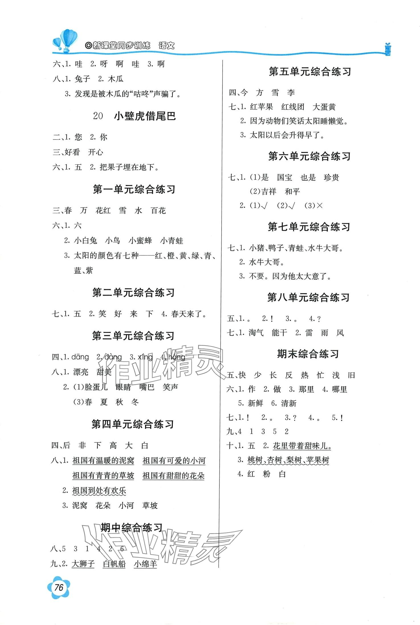 注:目前有些书本章节名称可能整理的还不是很完善,但都是按照顺序排列的,请同学们按照顺序仔细查找。练习册 2024年新课堂同步训练一年级语文下册人教版 答案主要是用来给同学们做完题方便对答案用的,请勿直接抄袭。