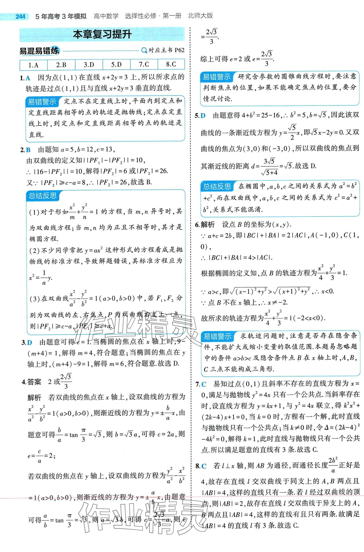 注:目前有些书本章节名称可能整理的还不是很完善,但都是按照顺序排列的,请同学们按照顺序仔细查找。练习册 2024年5年高考3年模拟高中数学选择性必修第一册北师大版 答案主要是用来给同学们做完题方便对答案用的,请勿直接抄袭。