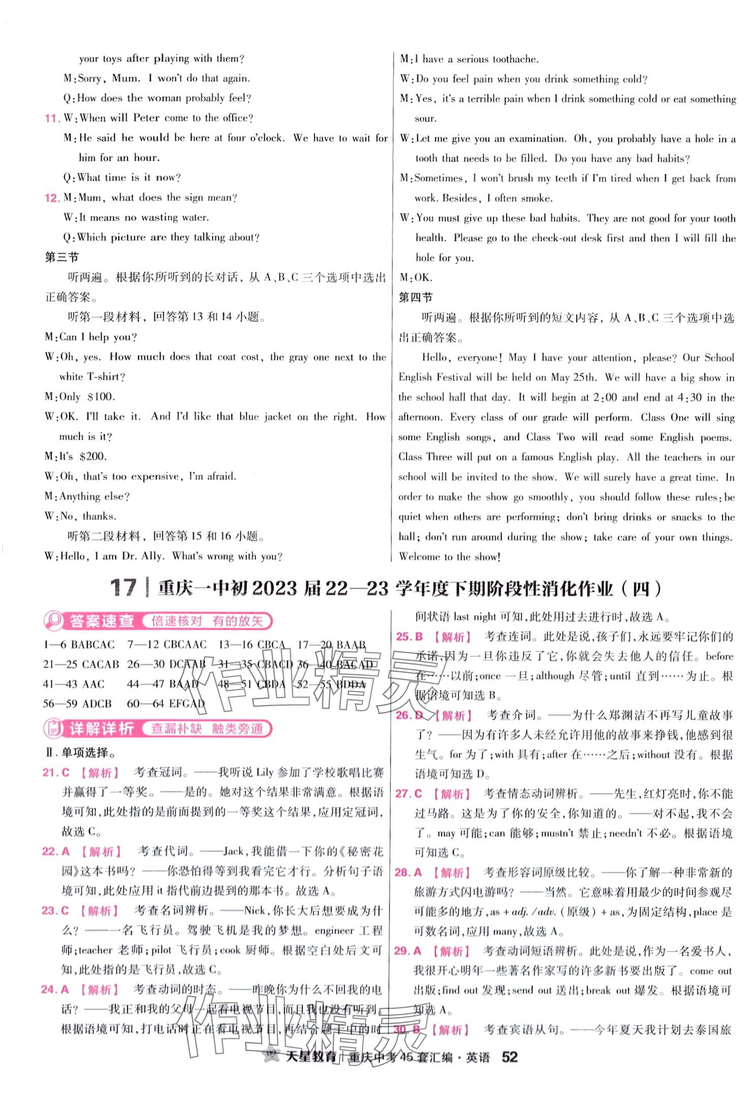 注:目前有些书本章节名称可能整理的还不是很完善,但都是按照顺序排列的,请同学们按照顺序仔细查找。练习册 2024年金考卷中考45套汇编英语重庆专版 答案主要是用来给同学们做完题方便对答案用的,请勿直接抄袭。