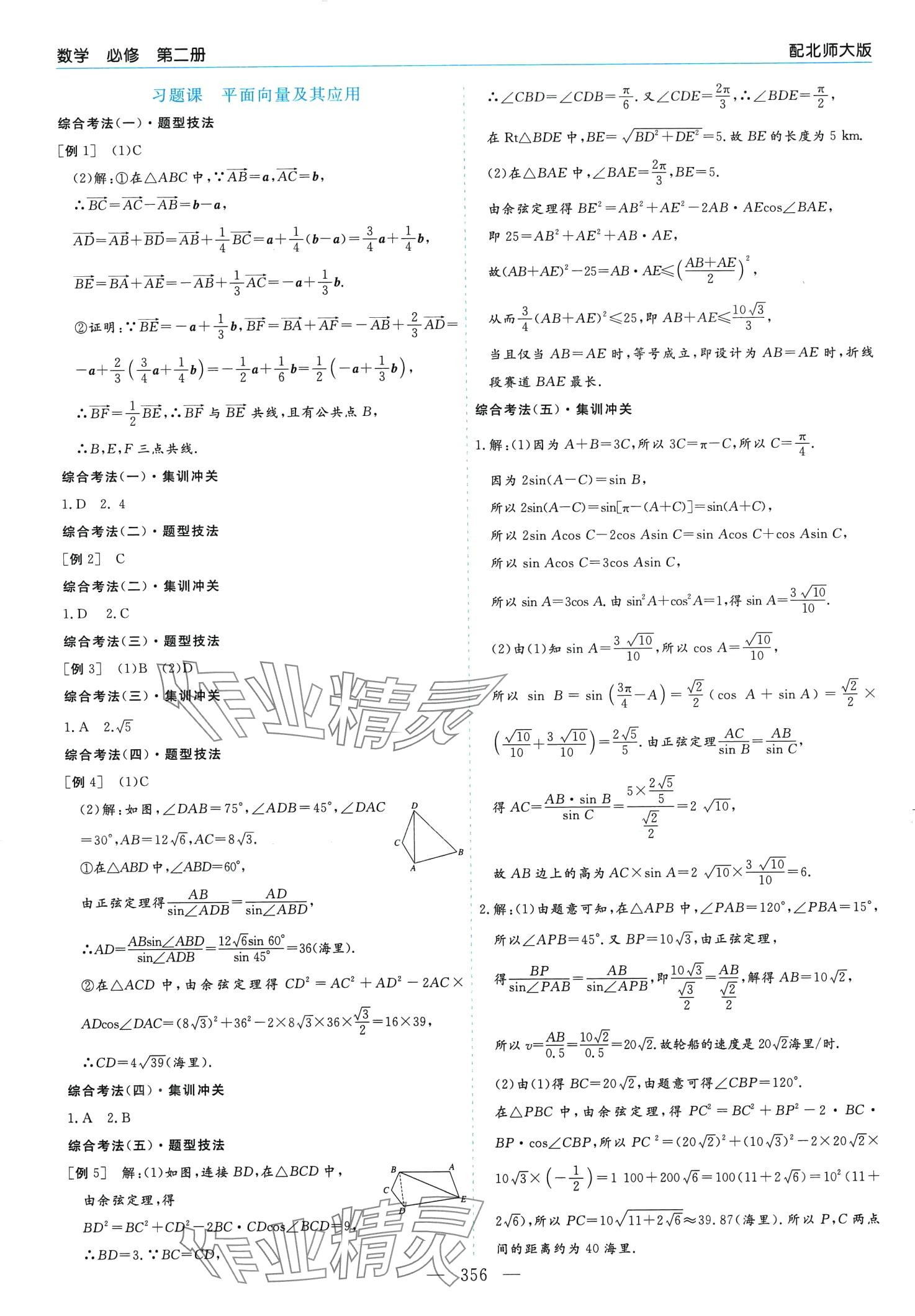 注:目前有些书本章节名称可能整理的还不是很完善,但都是按照顺序排列的,请同学们按照顺序仔细查找。练习册 2024年新课程学习指导高中数学必修第二册北师大版 答案主要是用来给同学们做完题方便对答案用的,请勿直接抄袭。