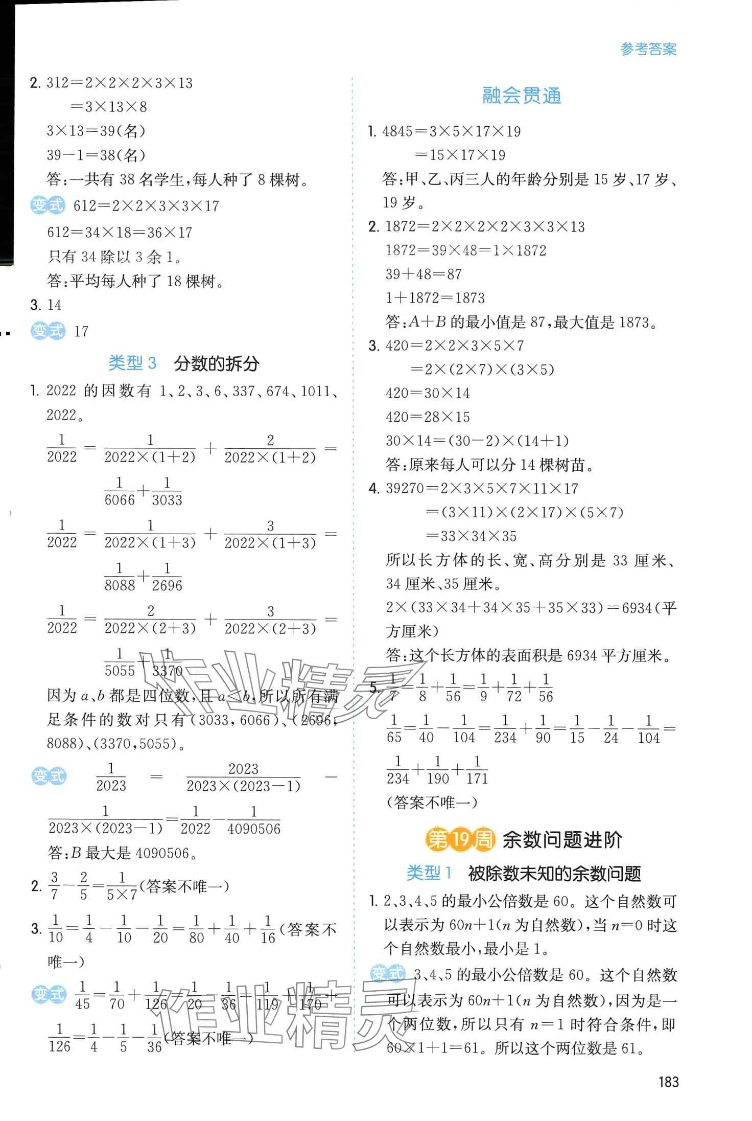 注:目前有些书本章节名称可能整理的还不是很完善,但都是按照顺序排列的,请同学们按照顺序仔细查找。练习册 2024年一本思维训练五年级数学全一册 答案主要是用来给同学们做完题方便对答案用的,请勿直接抄袭。