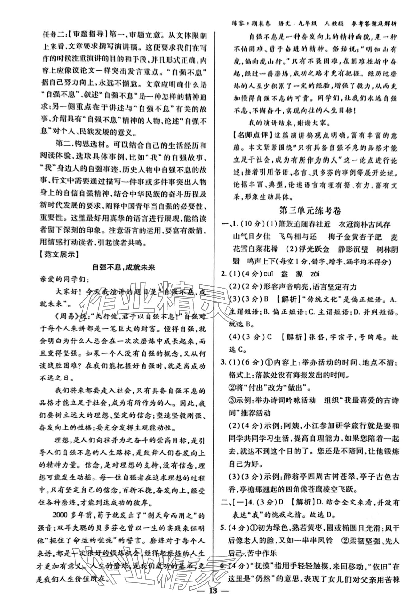 注:目前有些书本章节名称可能整理的还不是很完善,但都是按照顺序排列的,请同学们按照顺序仔细查找。练习册 2024年练客单元期末大练考语文 答案主要是用来给同学们做完题方便对答案用的,请勿直接抄袭。
