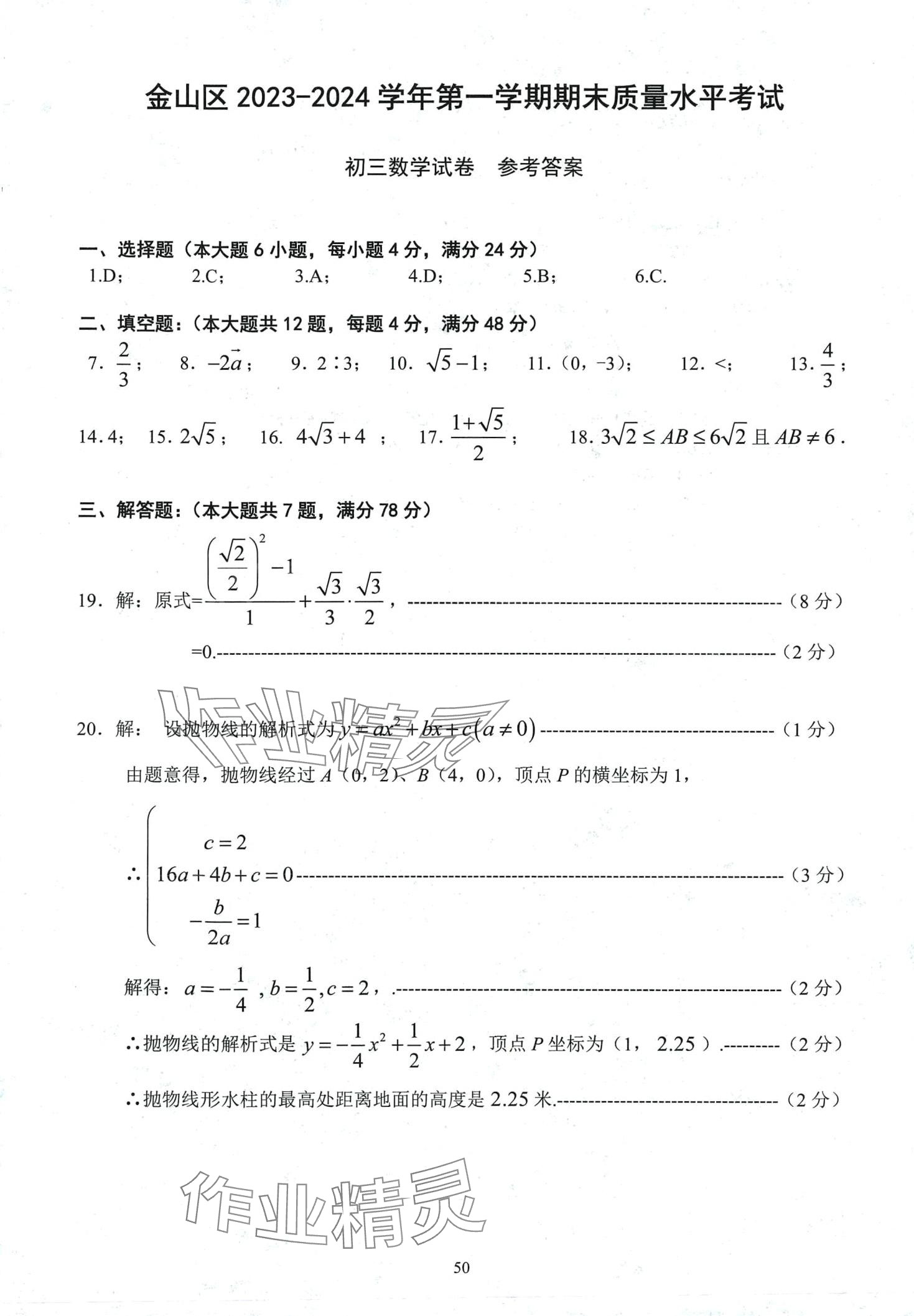 2024年初三年级试卷汇编数学沪教版