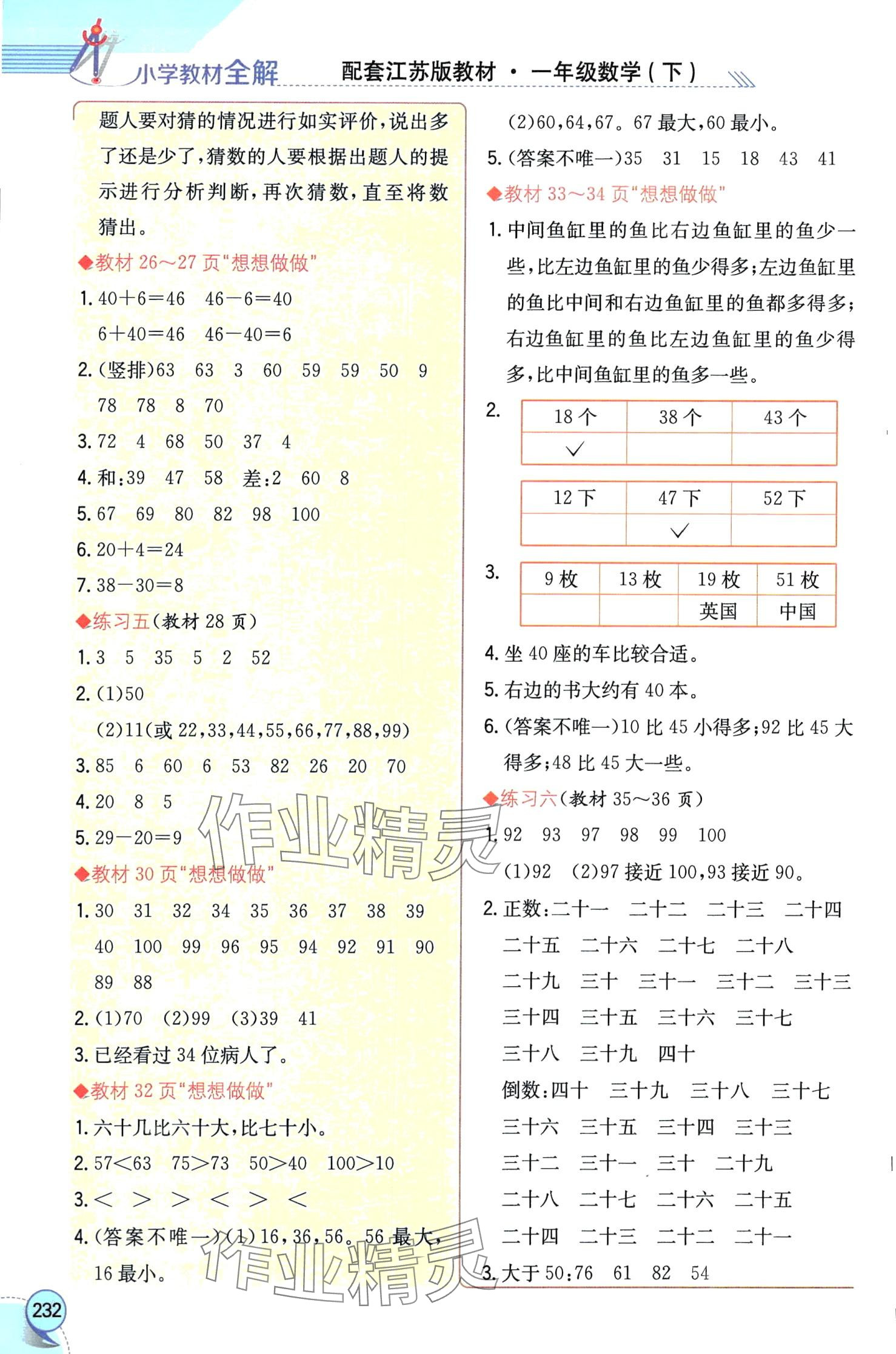 注:目前有些书本章节名称可能整理的还不是很完善,但都是按照顺序排列的,请同学们按照顺序仔细查找。练习册 2024年教材全解一年级数学下册苏教版 答案主要是用来给同学们做完题方便对答案用的,请勿直接抄袭。