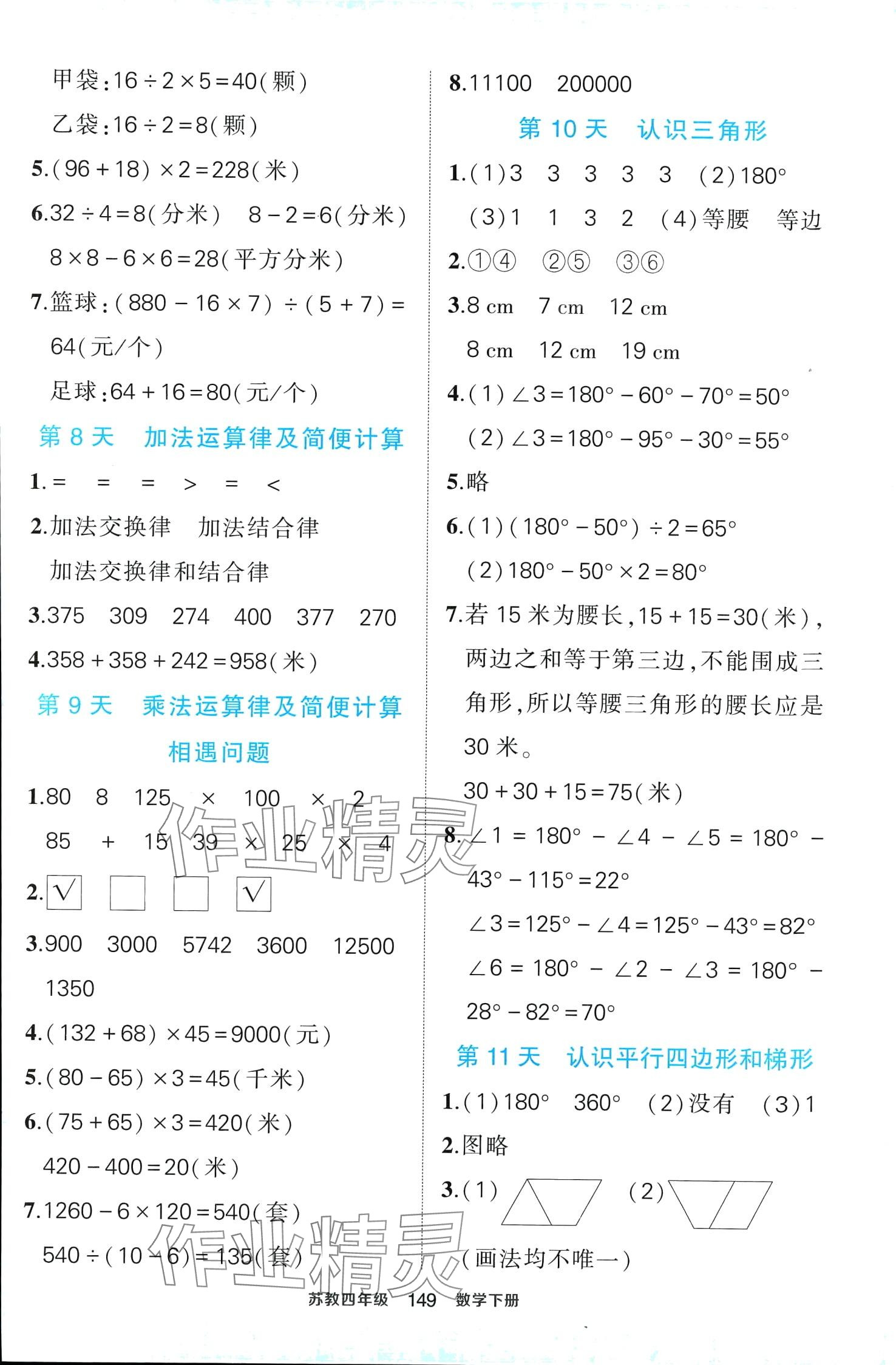 2024年黄冈状元成才路状元作业本四年级数学下册苏教版