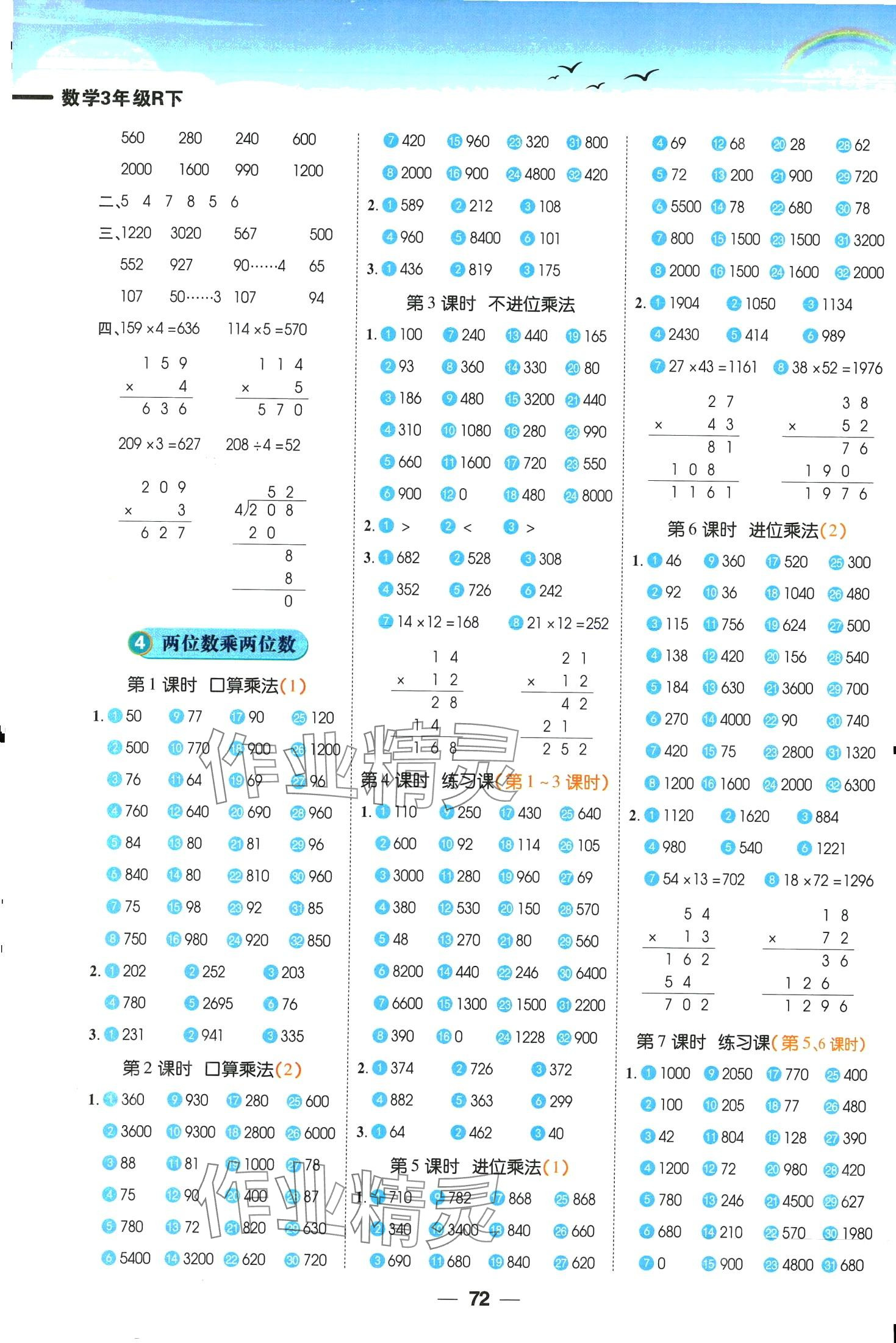 2024年跳跳熊预习日日清三年级数学下册人教版