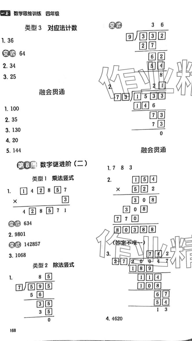 注:目前有些书本章节名称可能整理的还不是很完善,但都是按照顺序排列的,请同学们按照顺序仔细查找。练习册 2024年一本思维训练四年级数学全一册 答案主要是用来给同学们做完题方便对答案用的,请勿直接抄袭。