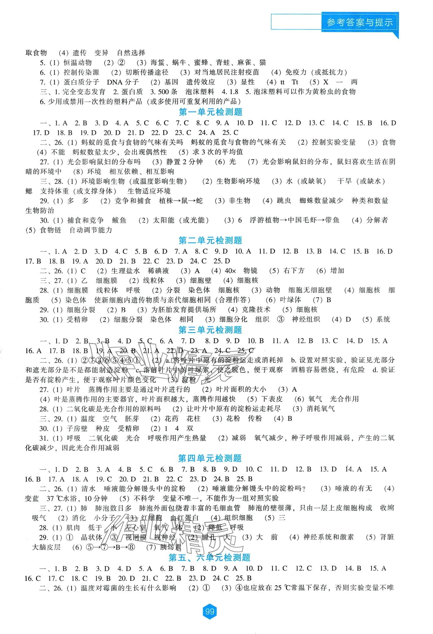 注:目前有些书本章节名称可能整理的还不是很完善,但都是按照顺序排列的,请同学们按照顺序仔细查找。练习册 2024年新课程能力培养八年级生物下册人教版 答案主要是用来给同学们做完题方便对答案用的,请勿直接抄袭。