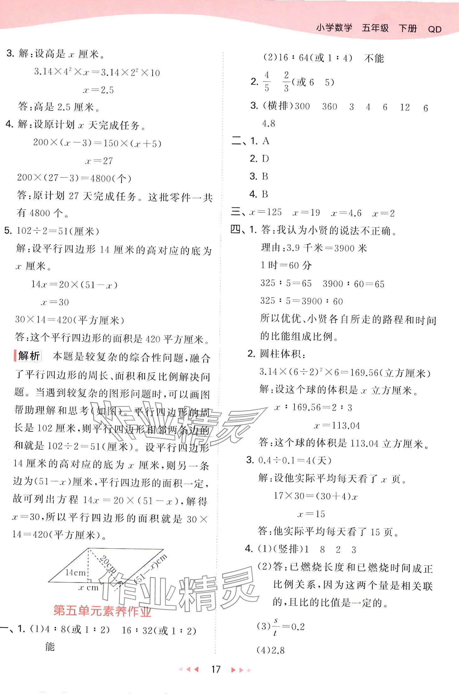 注:目前有些书本章节名称可能整理的还不是很完善,但都是按照顺序排列的,请同学们按照顺序仔细查找。练习册 2024年53天天练五年级数学下册青岛版五四制 答案主要是用来给同学们做完题方便对答案用的,请勿直接抄袭。