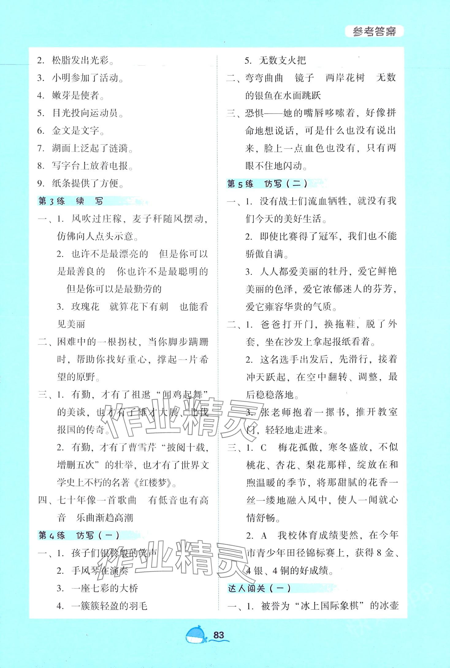 注:目前有些书本章节名称可能整理的还不是很完善,但都是按照顺序排列的,请同学们按照顺序仔细查找。练习册 2024年尖子生句式训练五年级语文全一册人教版 答案主要是用来给同学们做完题方便对答案用的,请勿直接抄袭。