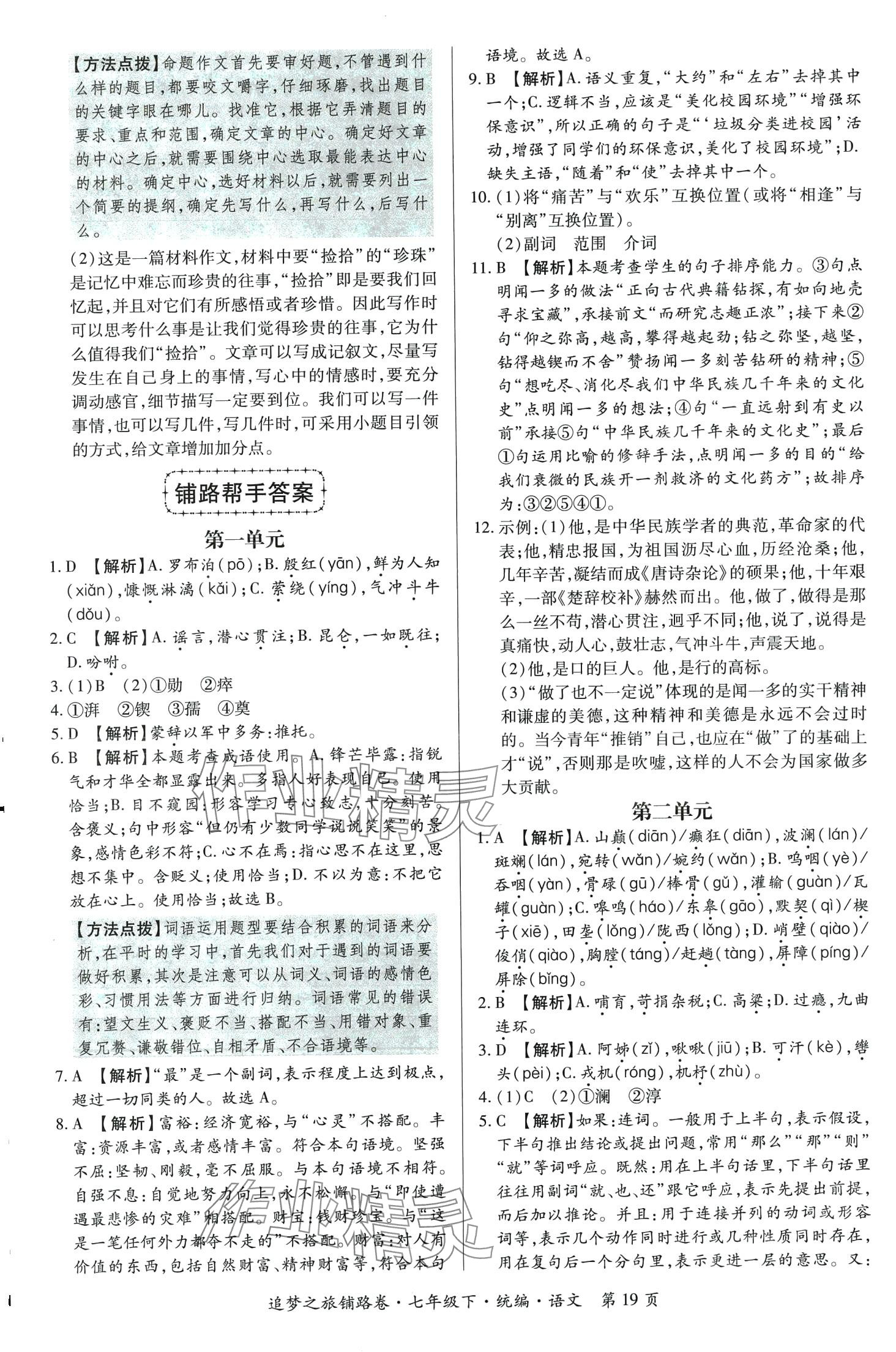 注:目前有些书本章节名称可能整理的还不是很完善,但都是按照顺序排列的,请同学们按照顺序仔细查找。练习册 2024年追梦之旅铺路卷七年级语文下册人教版河南专版 答案主要是用来给同学们做完题方便对答案用的,请勿直接抄袭。