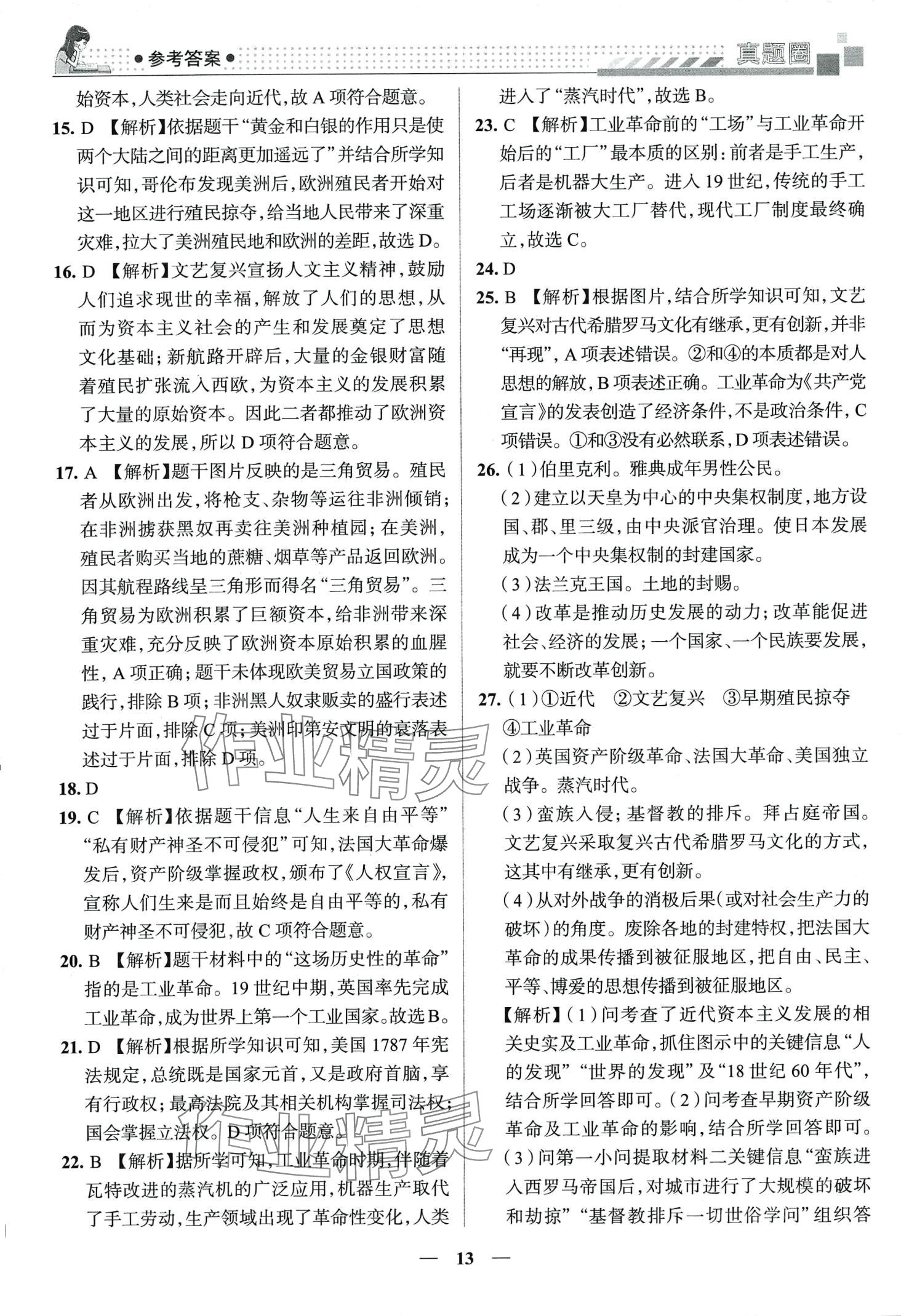 2024年真题圈九年级历史全一册人教版云南专版1A