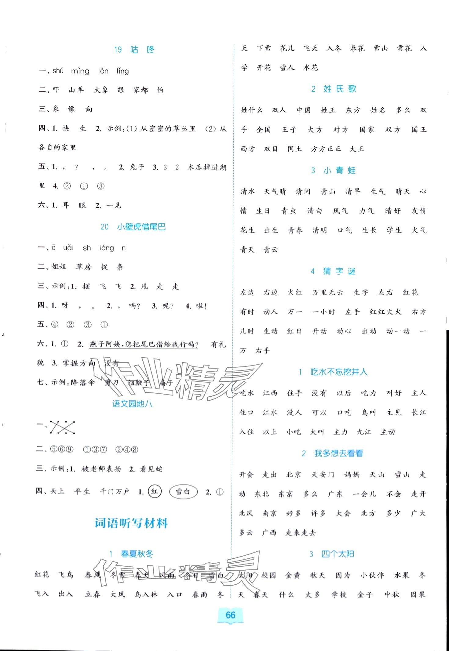 注:目前有些书本章节名称可能整理的还不是很完善,但都是按照顺序排列的,请同学们按照顺序仔细查找。练习册 2024年同步练习与测评福建少年儿童出版社一年级语文下册人教版 答案主要是用来给同学们做完题方便对答案用的,请勿直接抄袭。