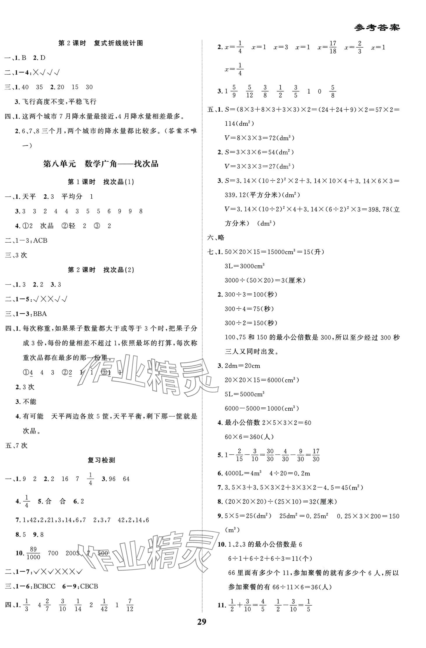 注:目前有些书本章节名称可能整理的还不是很完善,但都是按照顺序排列的,请同学们按照顺序仔细查找。练习册 2024年尖兵题典天天练五年级数学下册人教版 答案主要是用来给同学们做完题方便对答案用的,请勿直接抄袭。