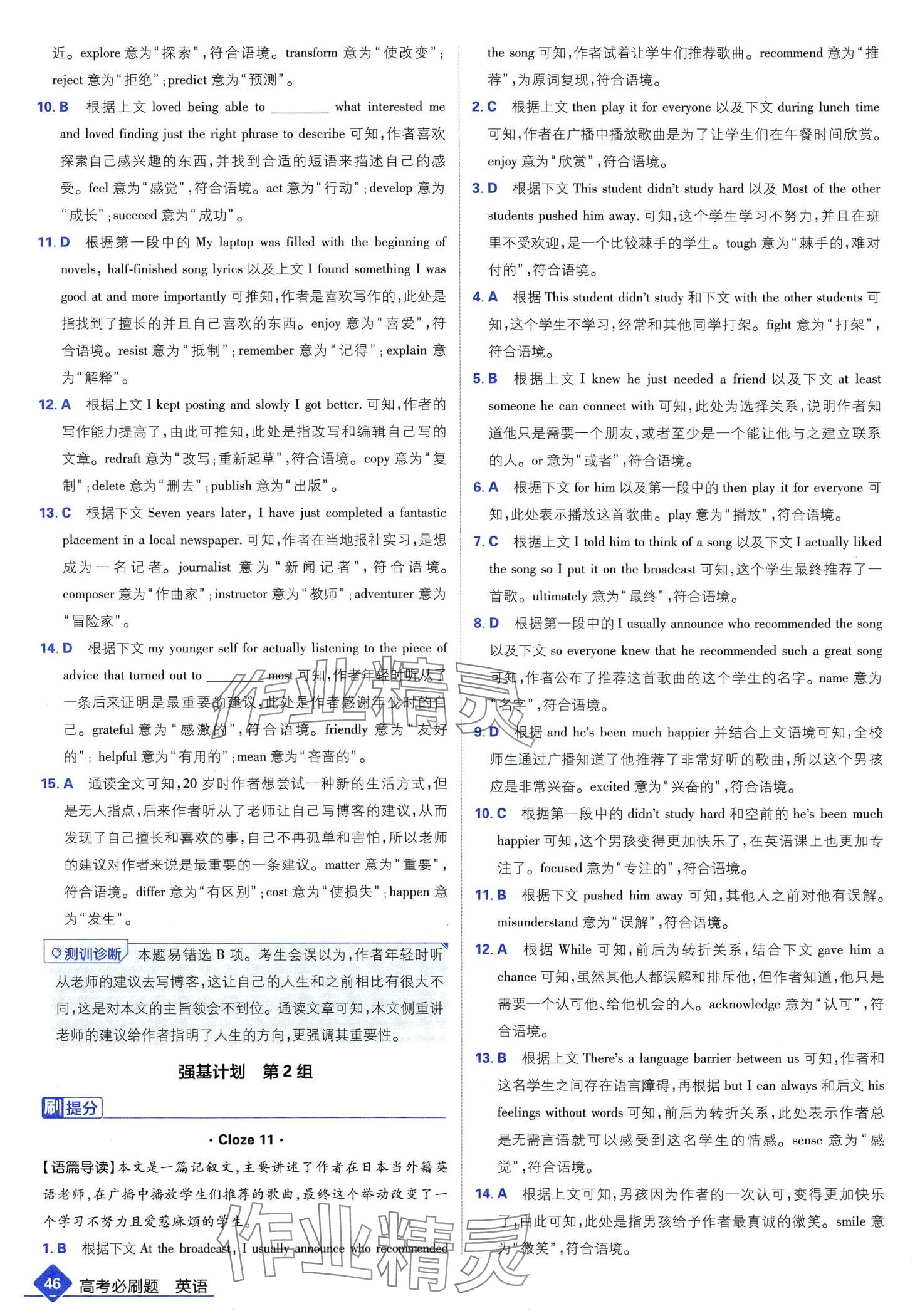 注:目前有些书本章节名称可能整理的还不是很完善,但都是按照顺序排列的,请同学们按照顺序仔细查找。练习册 2024年高考必刷题高中英语 答案主要是用来给同学们做完题方便对答案用的,请勿直接抄袭。