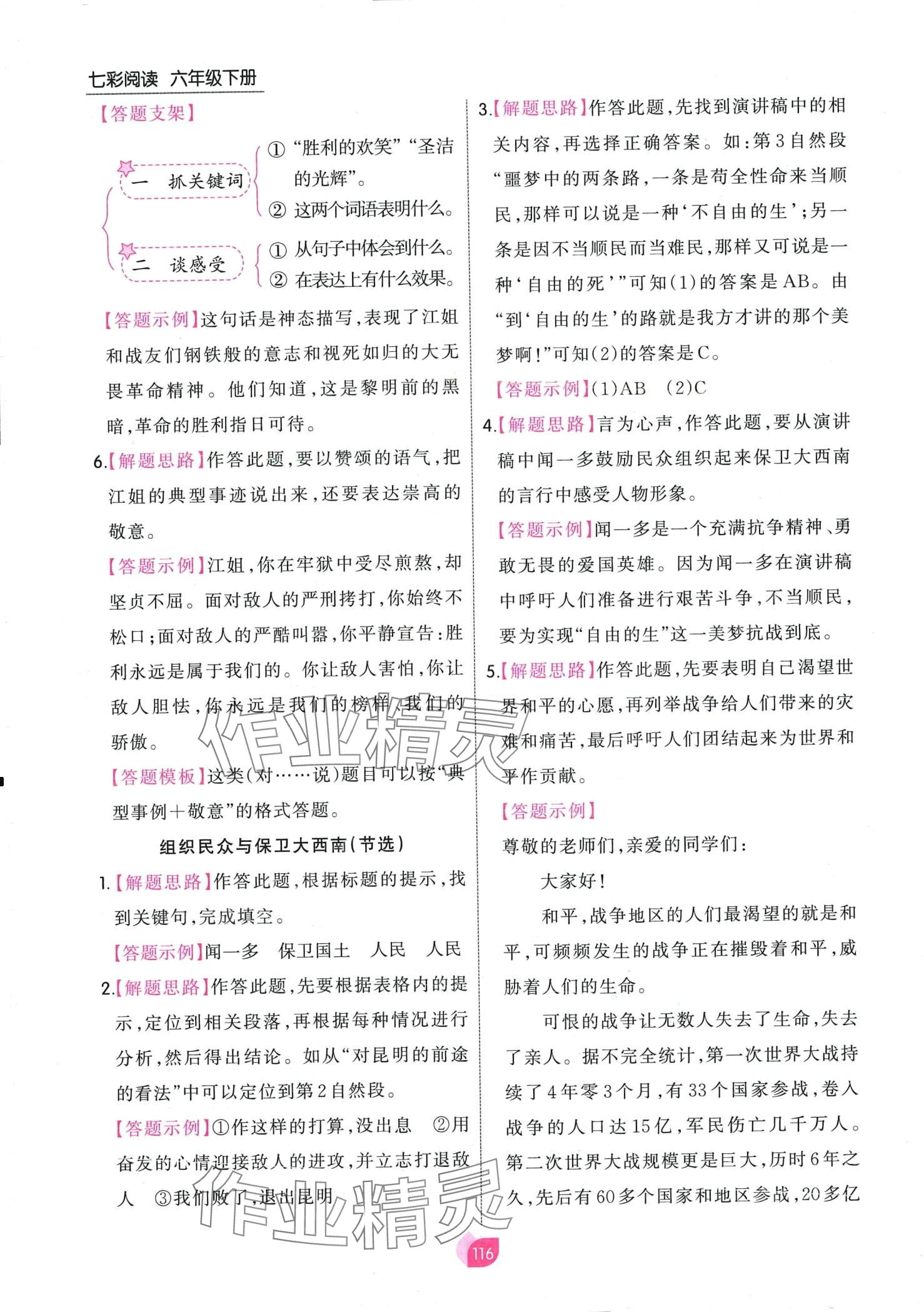 注:目前有些书本章节名称可能整理的还不是很完善,但都是按照顺序排列的,请同学们按照顺序仔细查找。练习册 2024年七彩阅读六年级语文下册人教版 答案主要是用来给同学们做完题方便对答案用的,请勿直接抄袭。