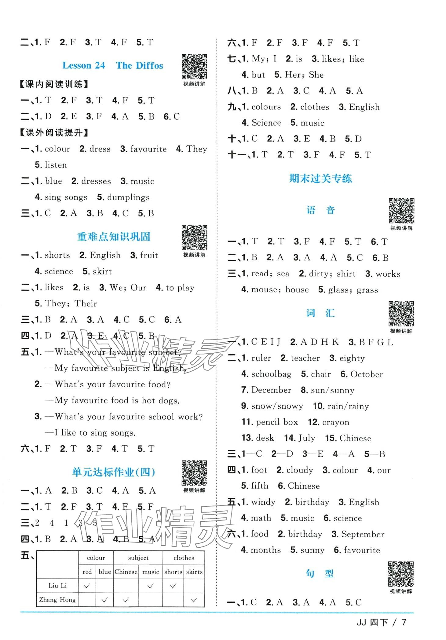 注:目前有些书本章节名称可能整理的还不是很完善,但都是按照顺序排列的,请同学们按照顺序仔细查找。练习册 2024年阳光同学课时优化作业四年级英语下册冀教版 答案主要是用来给同学们做完题方便对答案用的,请勿直接抄袭。