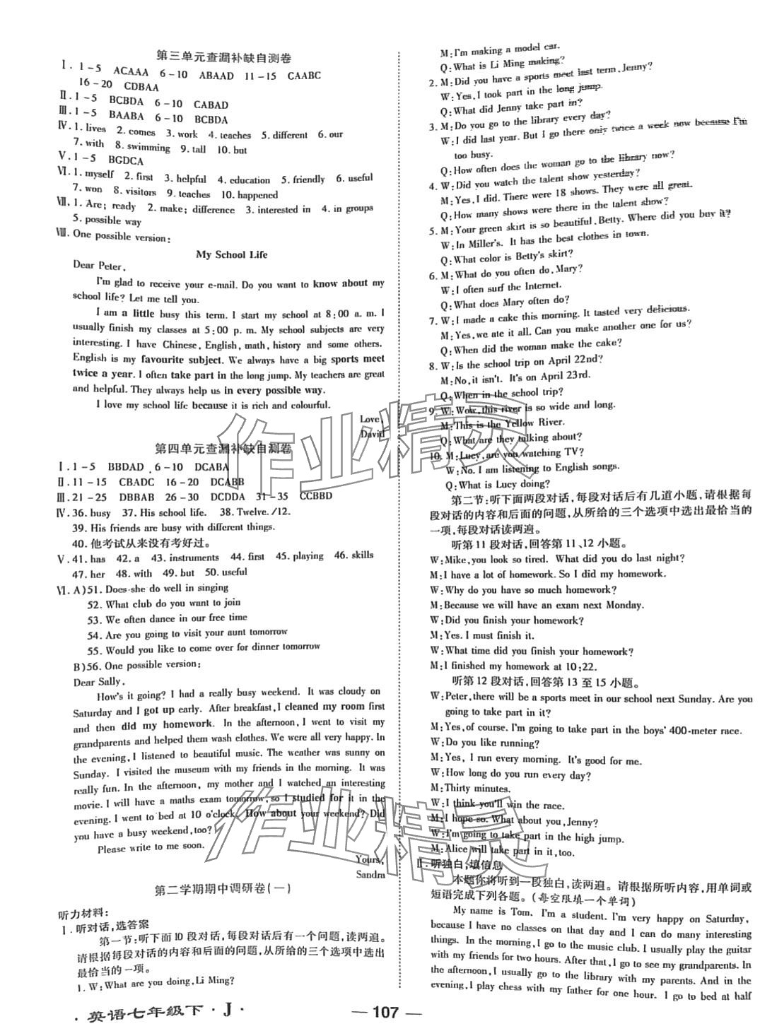 注:目前有些书本章节名称可能整理的还不是很完善,但都是按照顺序排列的,请同学们按照顺序仔细查找。练习册 2024年一线调研单元整合卷七年级英语下册冀教版 答案主要是用来给同学们做完题方便对答案用的,请勿直接抄袭。