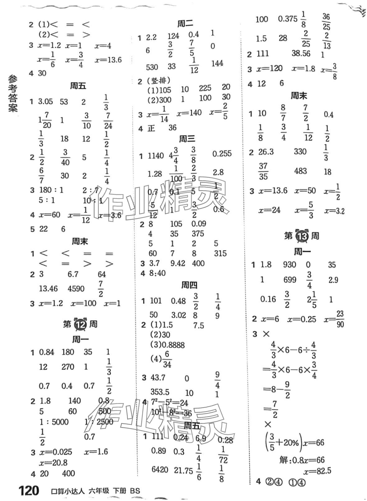 注:目前有些书本章节名称可能整理的还不是很完善,但都是按照顺序排列的,请同学们按照顺序仔细查找。练习册 2024年王朝霞口算小达人六年级数学下册北师大版 答案主要是用来给同学们做完题方便对答案用的,请勿直接抄袭。