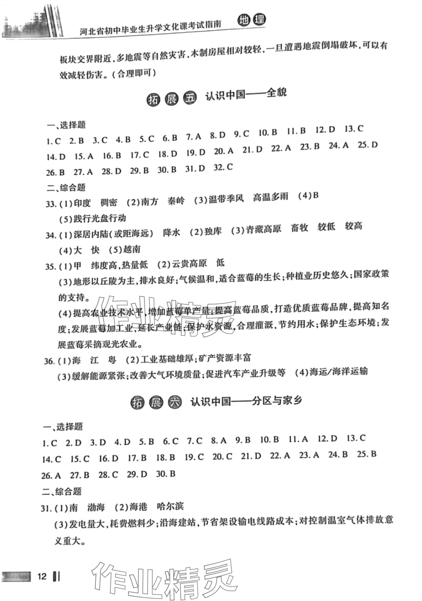 注:目前有些书本章节名称可能整理的还不是很完善,但都是按照顺序排列的,请同学们按照顺序仔细查找。练习册 2024年河北省初中毕业生升学文化课考试指南地理中考 答案主要是用来给同学们做完题方便对答案用的,请勿直接抄袭。