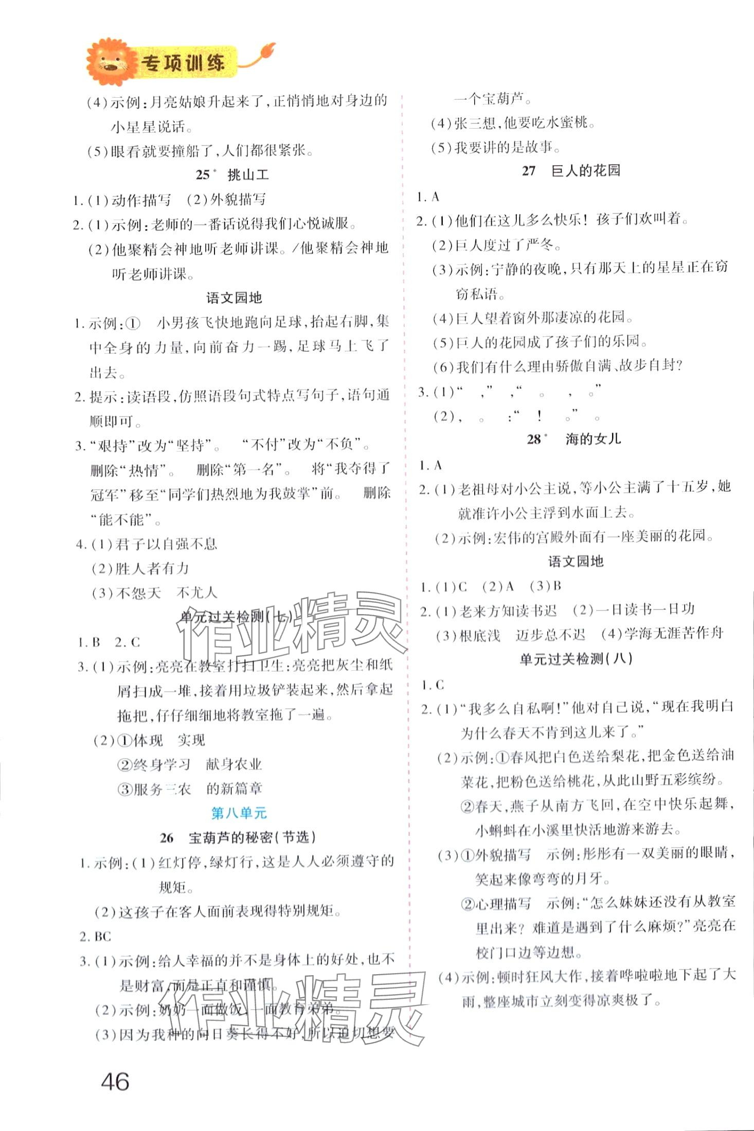 注:目前有些书本章节名称可能整理的还不是很完善,但都是按照顺序排列的,请同学们按照顺序仔细查找。练习册 2024年荣恒教育阅读理解四年级下册语文人教版 答案主要是用来给同学们做完题方便对答案用的,请勿直接抄袭。