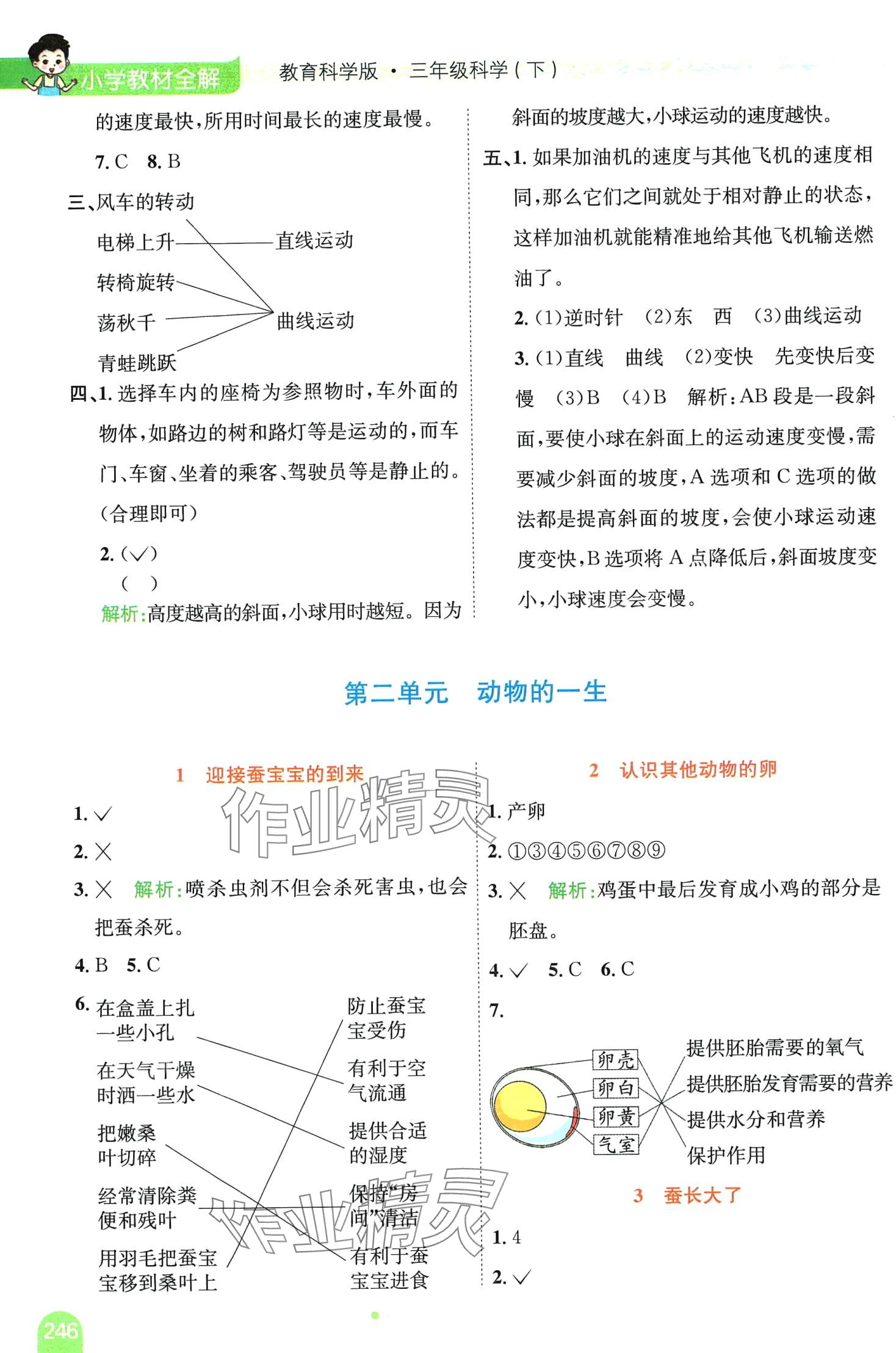 注:目前有些书本章节名称可能整理的还不是很完善,但都是按照顺序排列的,请同学们按照顺序仔细查找。练习册 2024年教材全解三年级科学下册教科版 答案主要是用来给同学们做完题方便对答案用的,请勿直接抄袭。