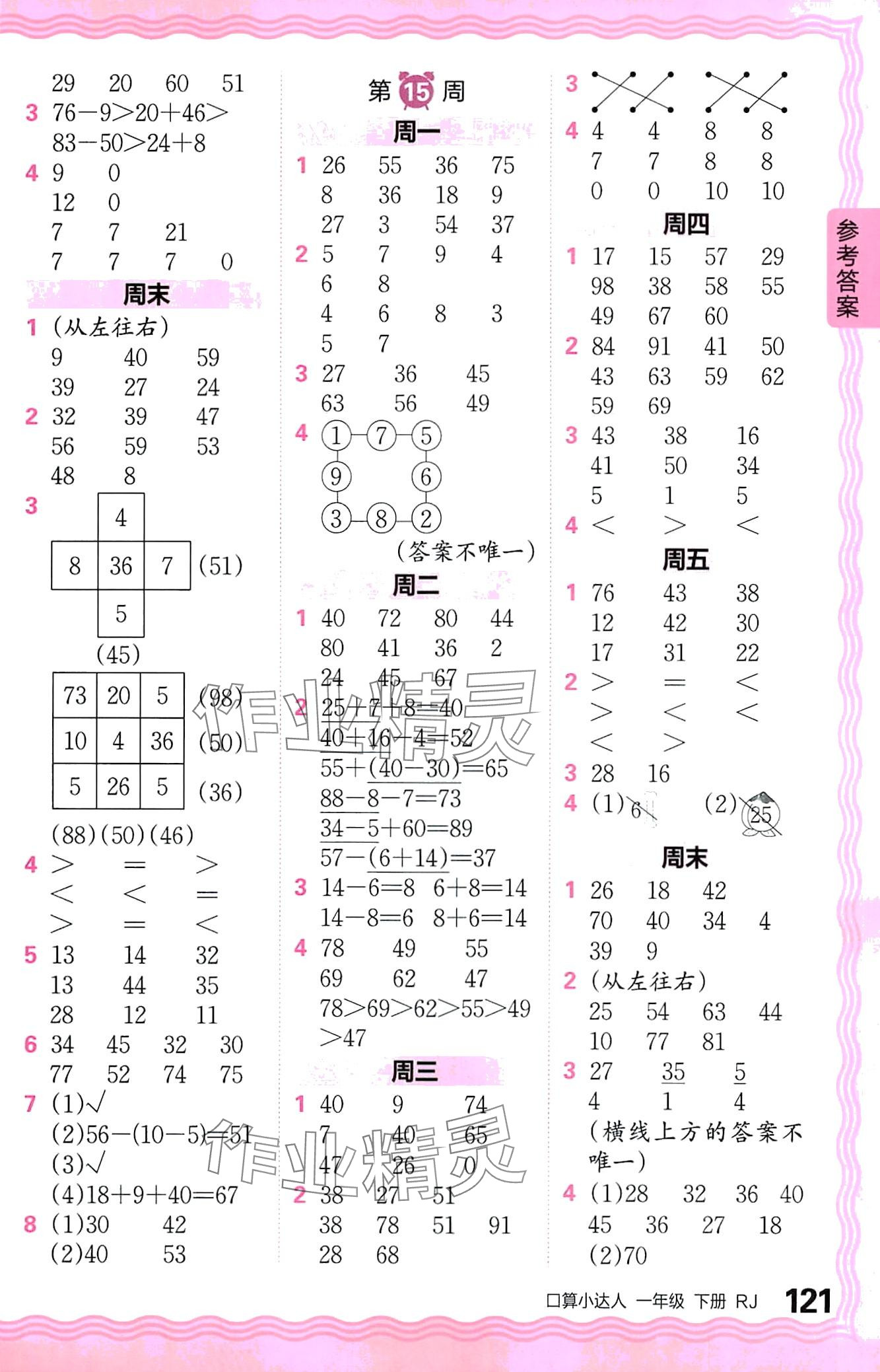 注:目前有些书本章节名称可能整理的还不是很完善,但都是按照顺序排列的,请同学们按照顺序仔细查找。练习册 2024年王朝霞口算小达人一年级数学下册人教版 答案主要是用来给同学们做完题方便对答案用的,请勿直接抄袭。