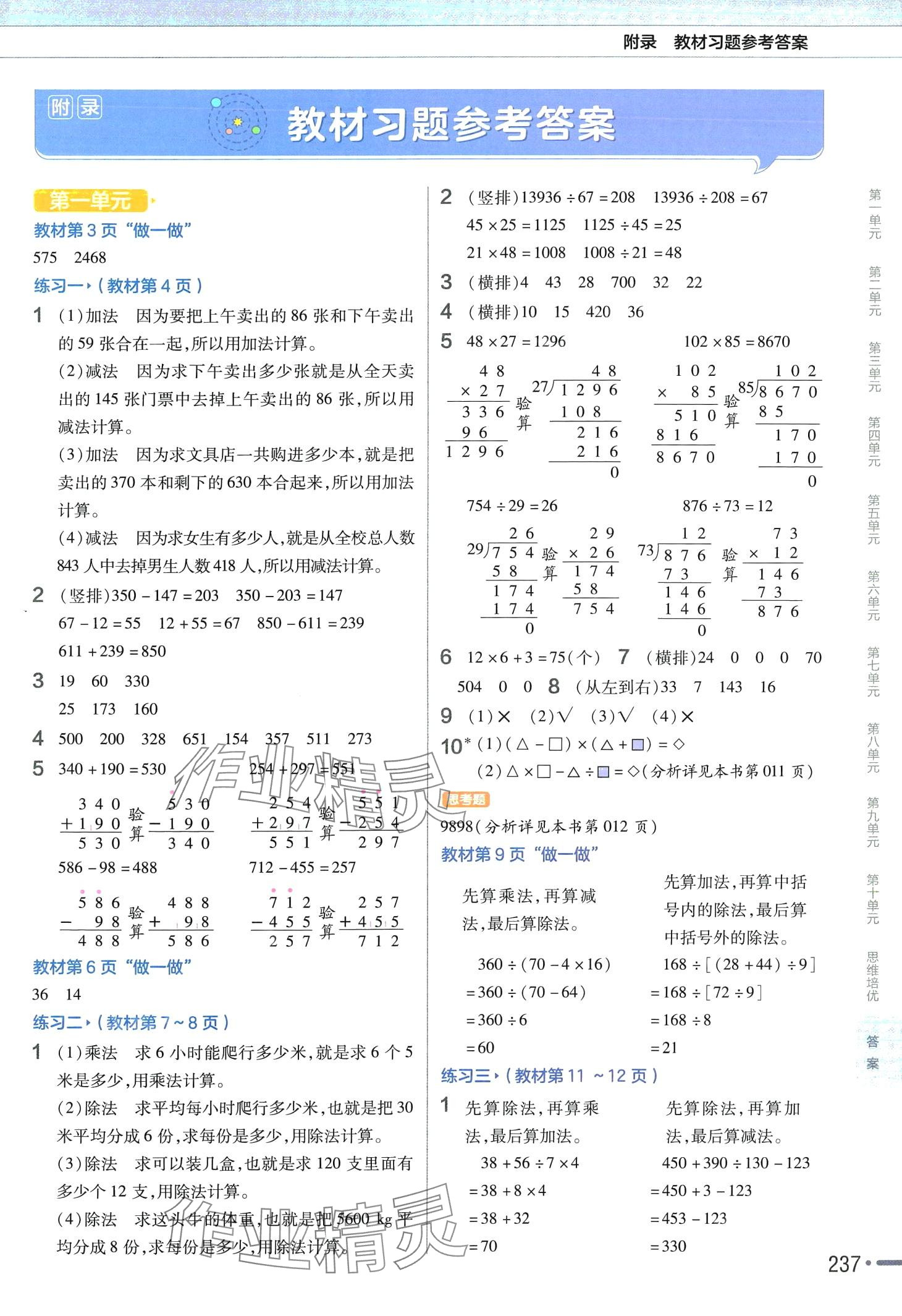 注:目前有些书本章节名称可能整理的还不是很完善,但都是按照顺序排列的,请同学们按照顺序仔细查找。练习册2024年教材帮四年级数学下册人教版答案主要是用来给同学们做完题方便对答案用的,请勿直接抄袭。