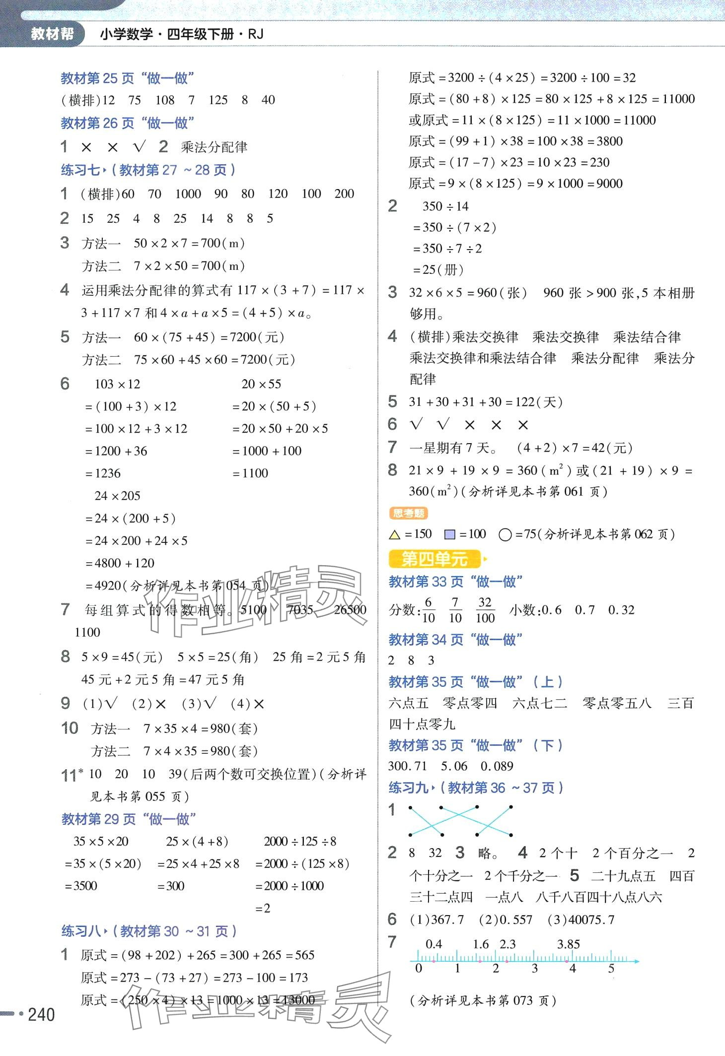 注:目前有些书本章节名称可能整理的还不是很完善,但都是按照顺序排列的,请同学们按照顺序仔细查找。练习册 2024年教材帮四年级数学下册人教版 答案主要是用来给同学们做完题方便对答案用的,请勿直接抄袭。