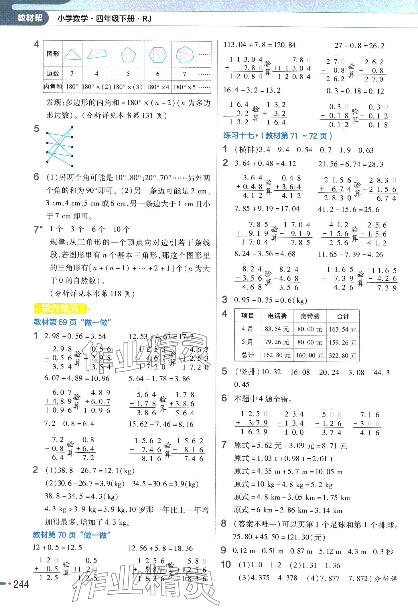 注:目前有些书本章节名称可能整理的还不是很完善,但都是按照顺序排列的,请同学们按照顺序仔细查找。练习册 2024年教材帮四年级数学下册人教版 答案主要是用来给同学们做完题方便对答案用的,请勿直接抄袭。