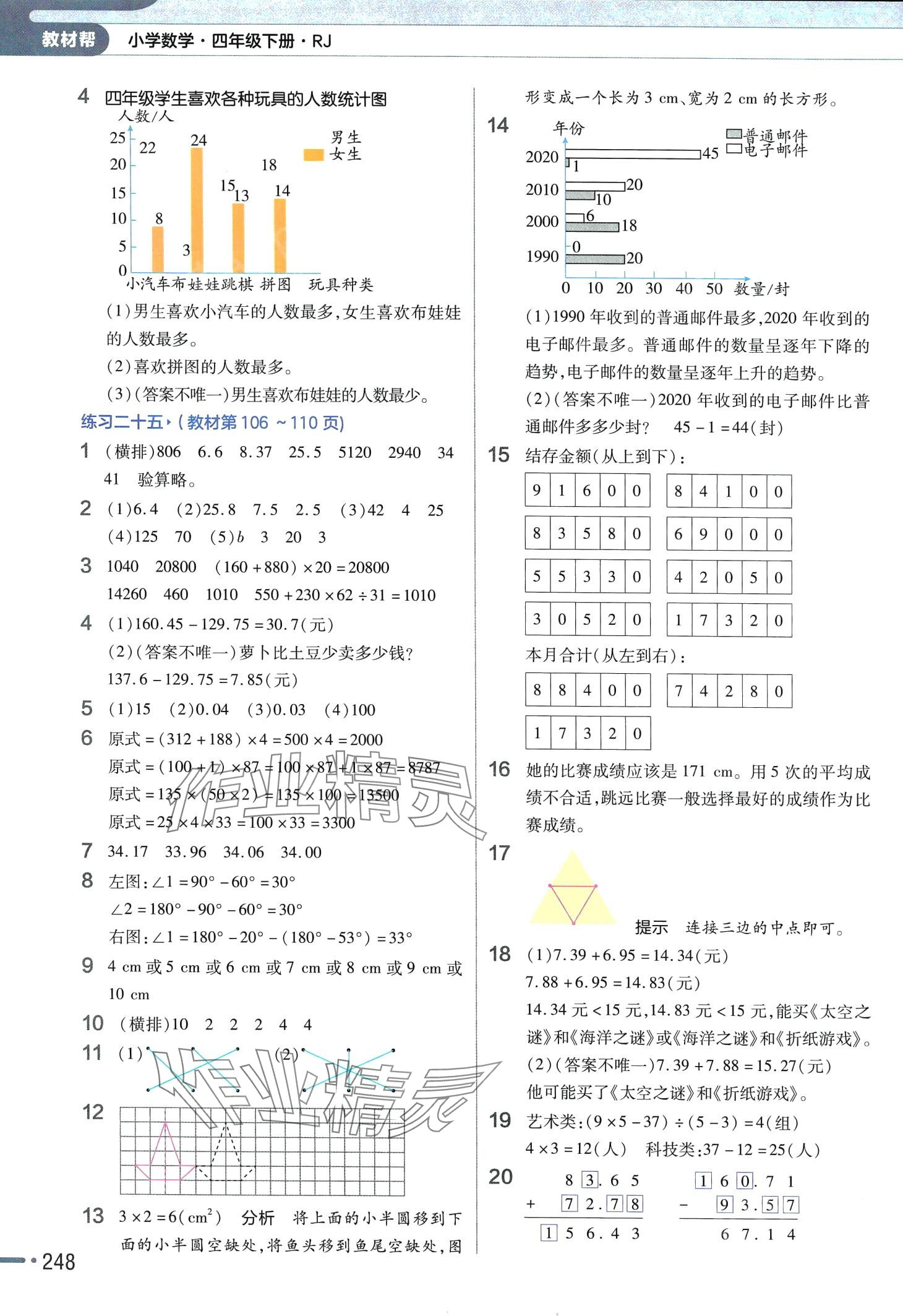 注:目前有些书本章节名称可能整理的还不是很完善,但都是按照顺序排列的,请同学们按照顺序仔细查找。练习册 2024年教材帮四年级数学下册人教版 答案主要是用来给同学们做完题方便对答案用的,请勿直接抄袭。
