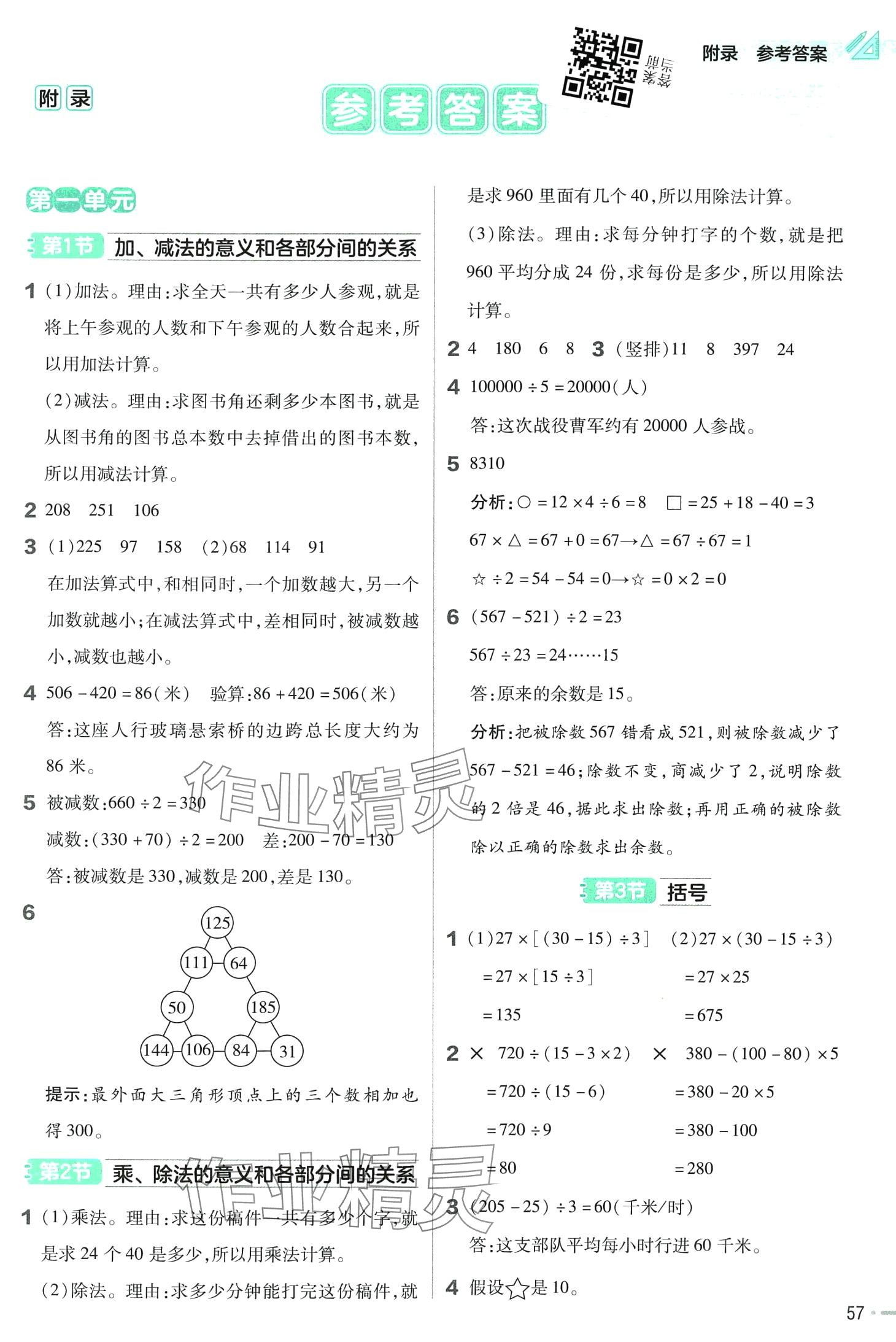 注:目前有些书本章节名称可能整理的还不是很完善,但都是按照顺序排列的,请同学们按照顺序仔细查找。练习册 2024年教材帮四年级数学下册人教版 答案主要是用来给同学们做完题方便对答案用的,请勿直接抄袭。