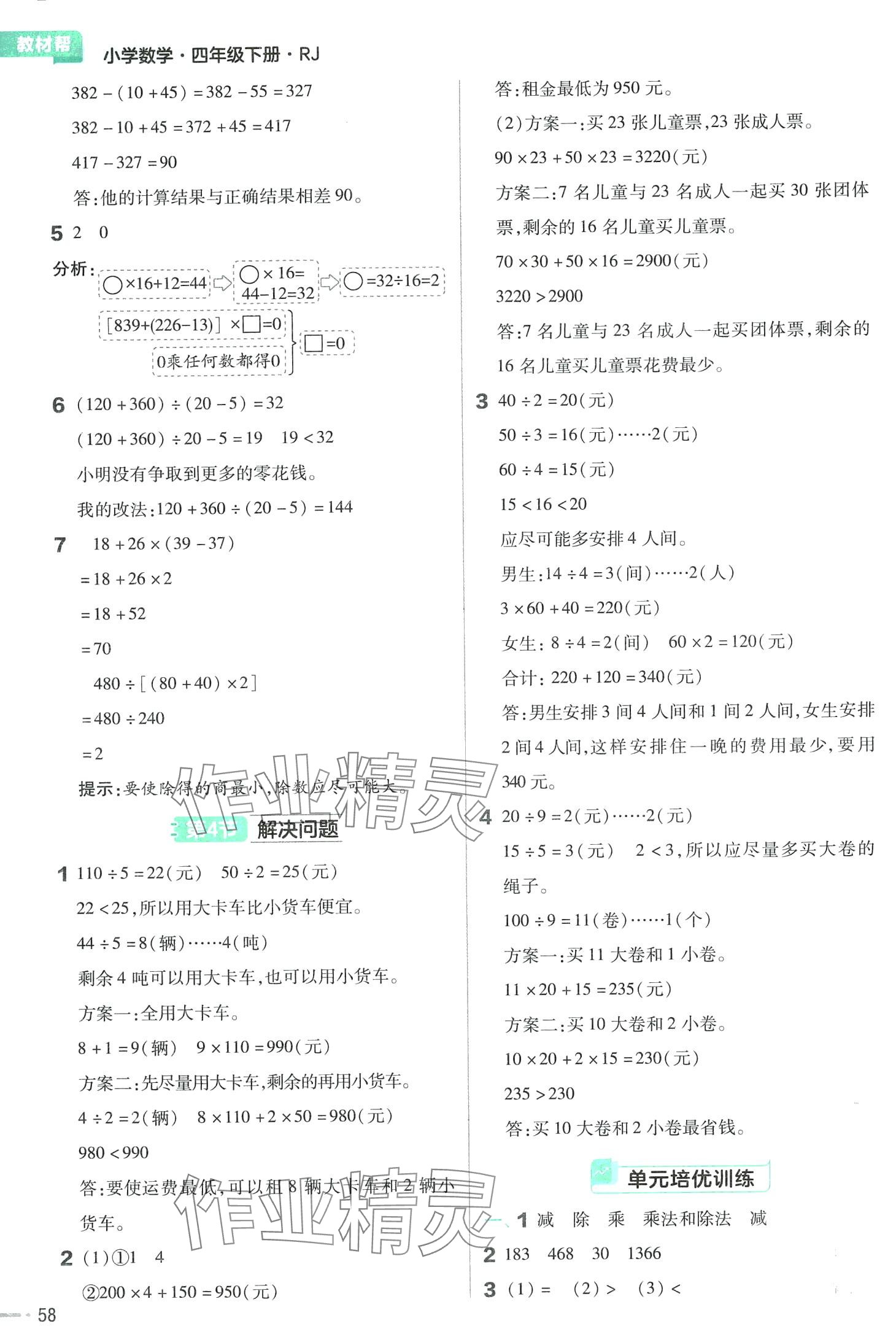 注:目前有些书本章节名称可能整理的还不是很完善,但都是按照顺序排列的,请同学们按照顺序仔细查找。练习册 2024年教材帮四年级数学下册人教版 答案主要是用来给同学们做完题方便对答案用的,请勿直接抄袭。