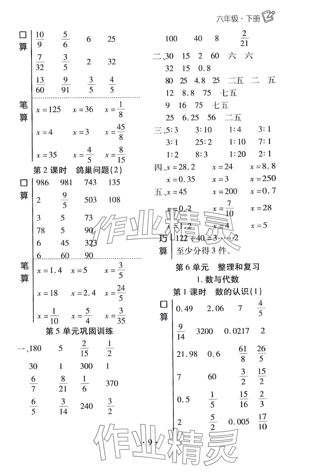 注:目前有些书本章节名称可能整理的还不是很完善,但都是按照顺序排列的,请同学们按照顺序仔细查找。练习册 2024年小学升同步口算六年级数学下册 答案主要是用来给同学们做完题方便对答案用的,请勿直接抄袭。