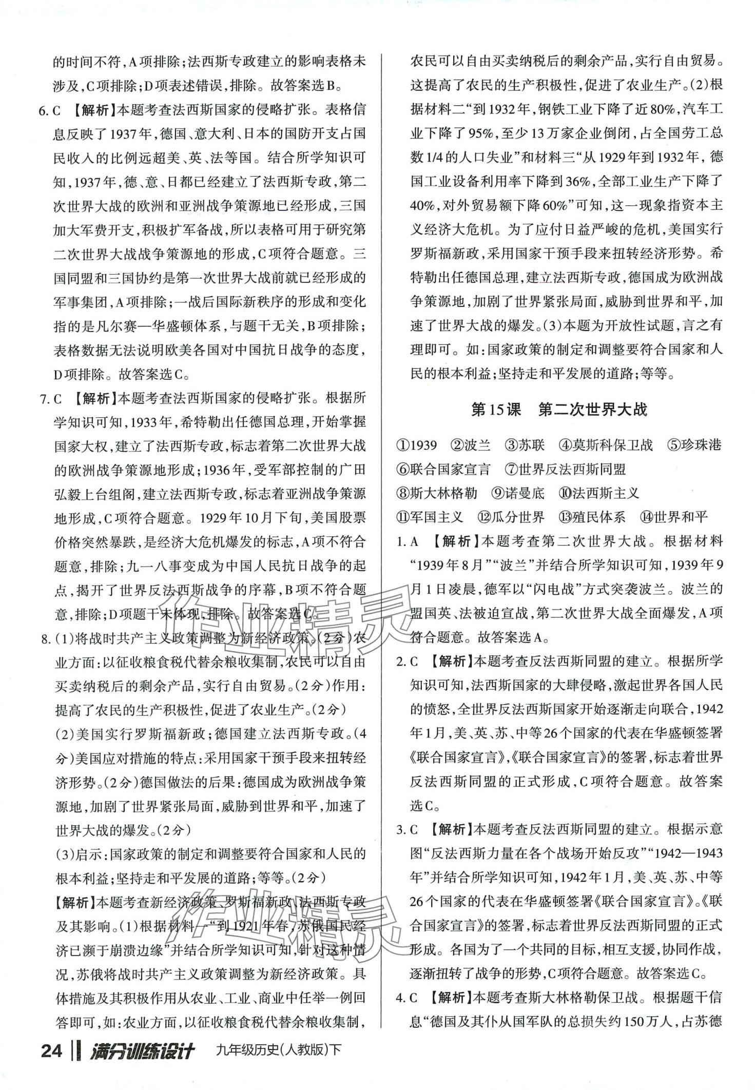 注:目前有些书本章节名称可能整理的还不是很完善,但都是按照顺序排列的,请同学们按照顺序仔细查找。练习册 2024年满分训练设计九年级历史下册人教版山西专版 答案主要是用来给同学们做完题方便对答案用的,请勿直接抄袭。