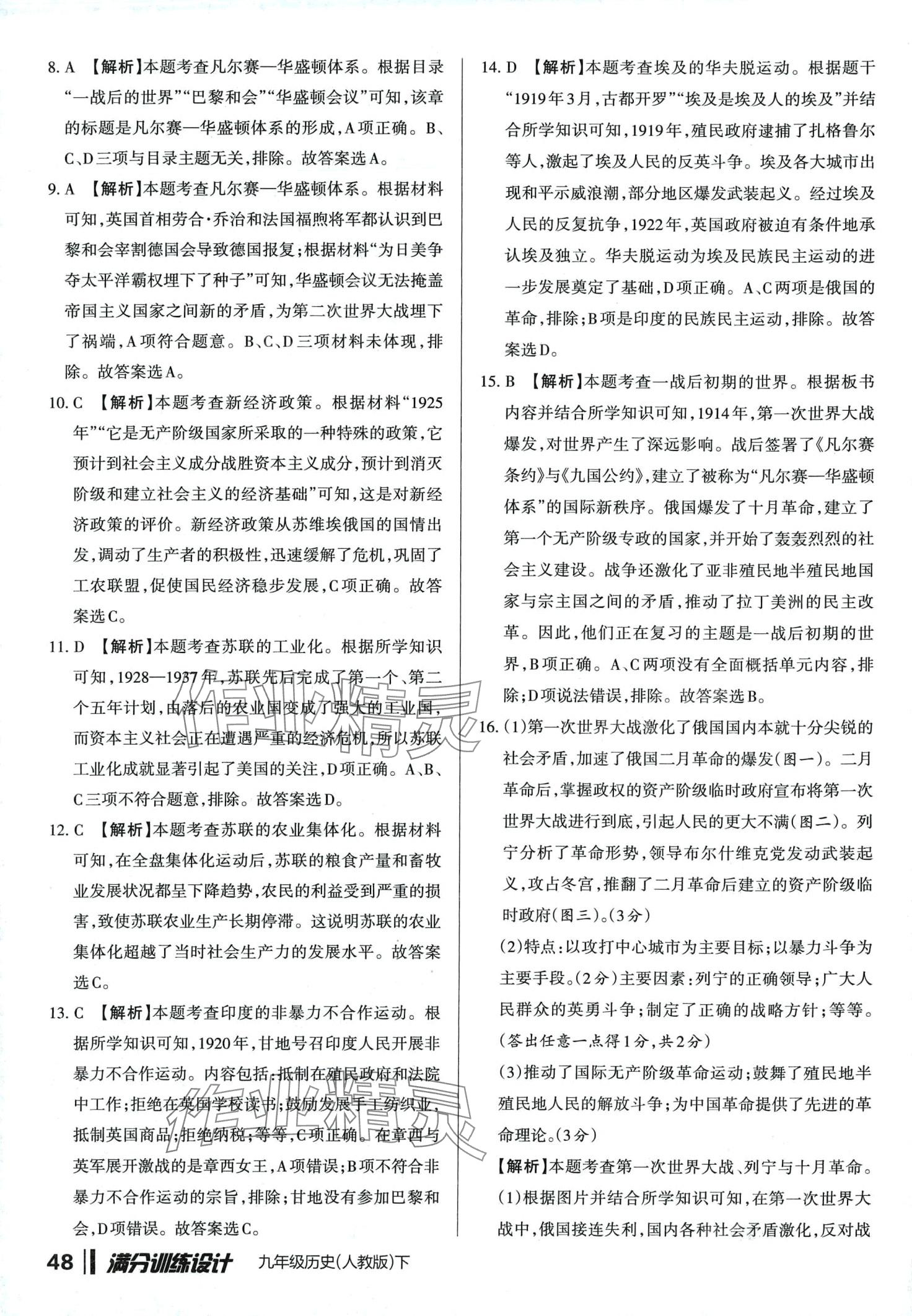 注:目前有些书本章节名称可能整理的还不是很完善,但都是按照顺序排列的,请同学们按照顺序仔细查找。练习册 2024年满分训练设计九年级历史下册人教版山西专版 答案主要是用来给同学们做完题方便对答案用的,请勿直接抄袭。