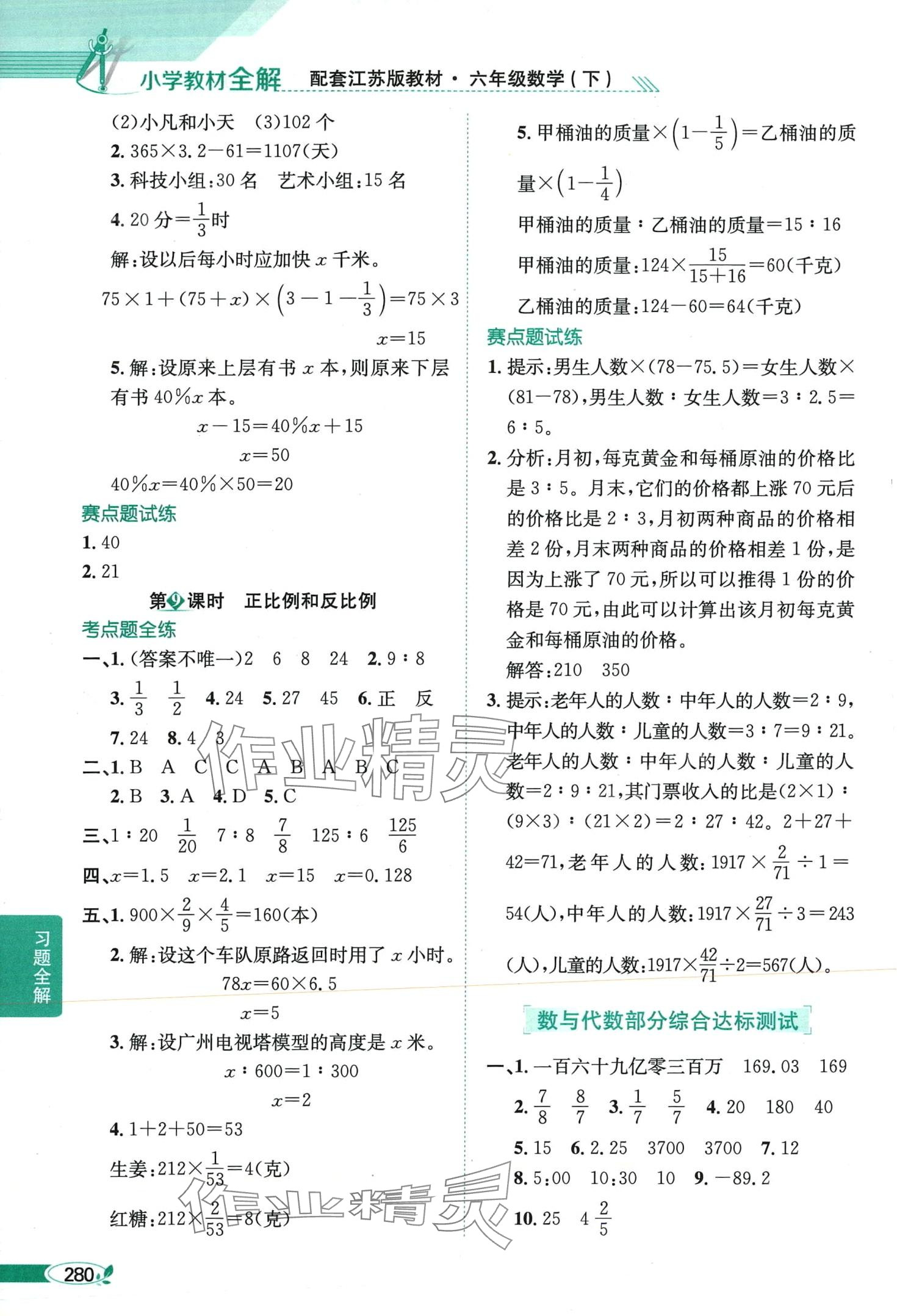 注:目前有些书本章节名称可能整理的还不是很完善,但都是按照顺序排列的,请同学们按照顺序仔细查找。练习册 2024年教材全解六年级数学下册苏教版 答案主要是用来给同学们做完题方便对答案用的,请勿直接抄袭。