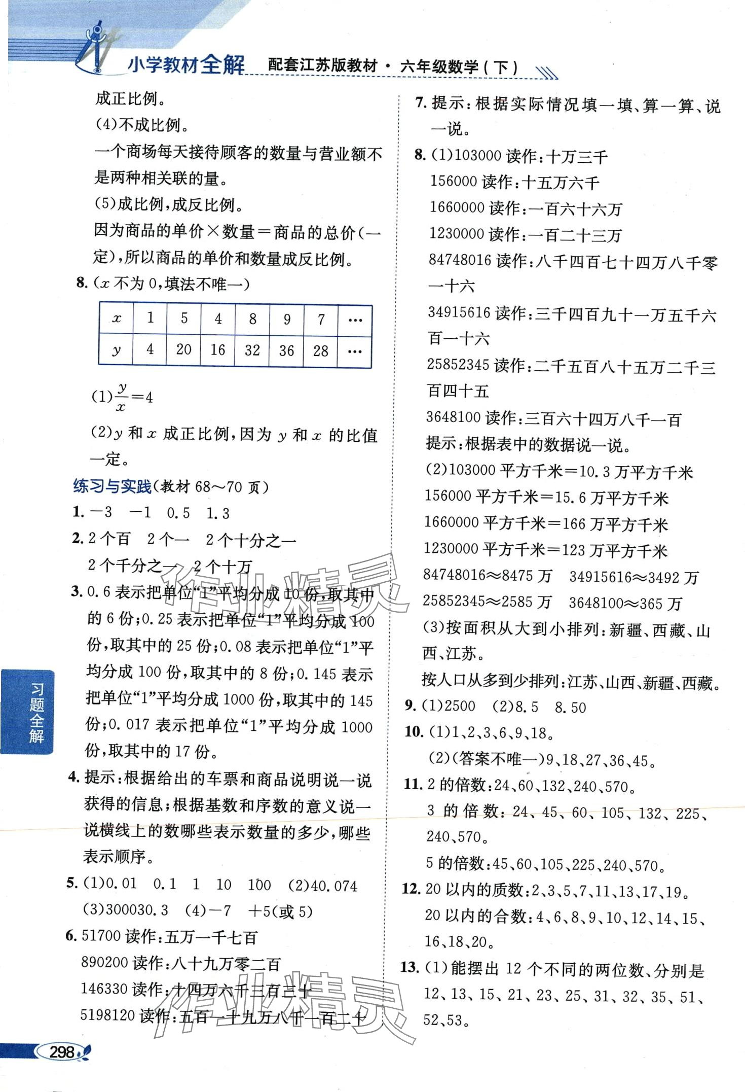注:目前有些书本章节名称可能整理的还不是很完善,但都是按照顺序排列的,请同学们按照顺序仔细查找。练习册 2024年教材全解六年级数学下册苏教版 答案主要是用来给同学们做完题方便对答案用的,请勿直接抄袭。