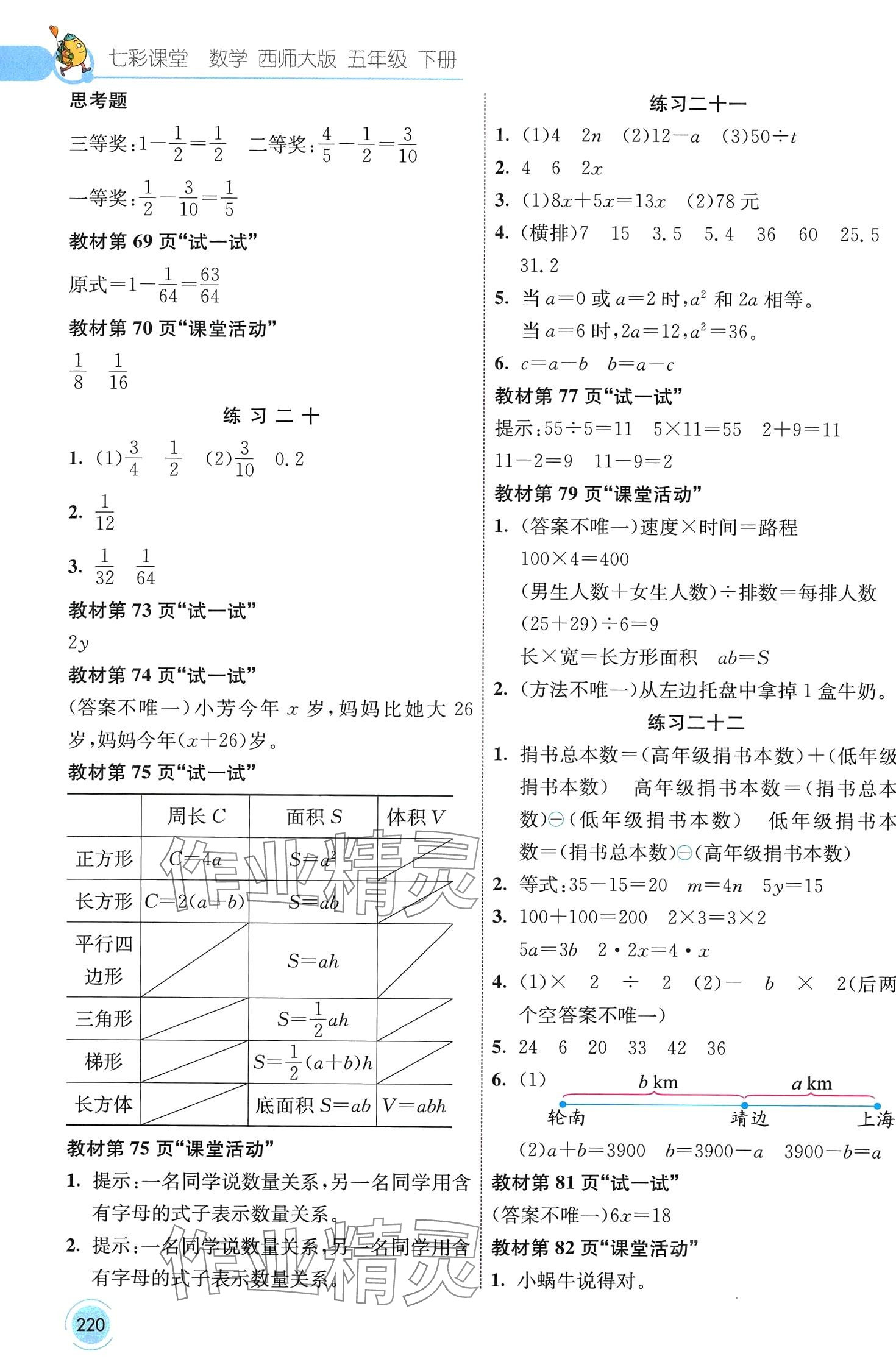 注:目前有些书本章节名称可能整理的还不是很完善,但都是按照顺序排列的,请同学们按照顺序仔细查找。练习册 2024年七彩课堂五年级数学下册西师大版 答案主要是用来给同学们做完题方便对答案用的,请勿直接抄袭。